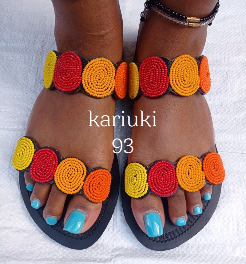 Sandales kenyanes/sandales perlées africaines/sandales femmes/cadeau pour elle/Tongs/sandales perlées