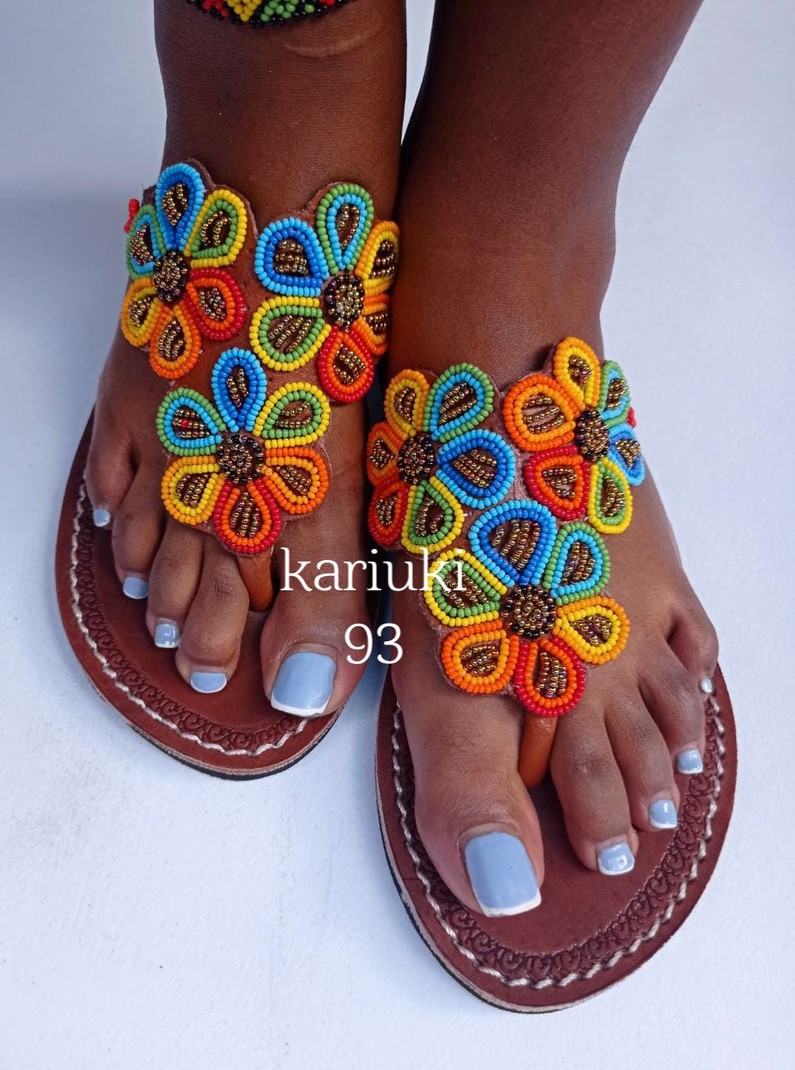Sandales Masai Sandales perlées africaines Belles tongs Sandales colorées Cadeau pour elle Tongs sandales kenyanes Sandales perlées pour femmes Nous expédions via DHL Express Toutes les tailles sont disponibles car nous les fabriquons sur mesure Merci d'avoir acheté avec nous.