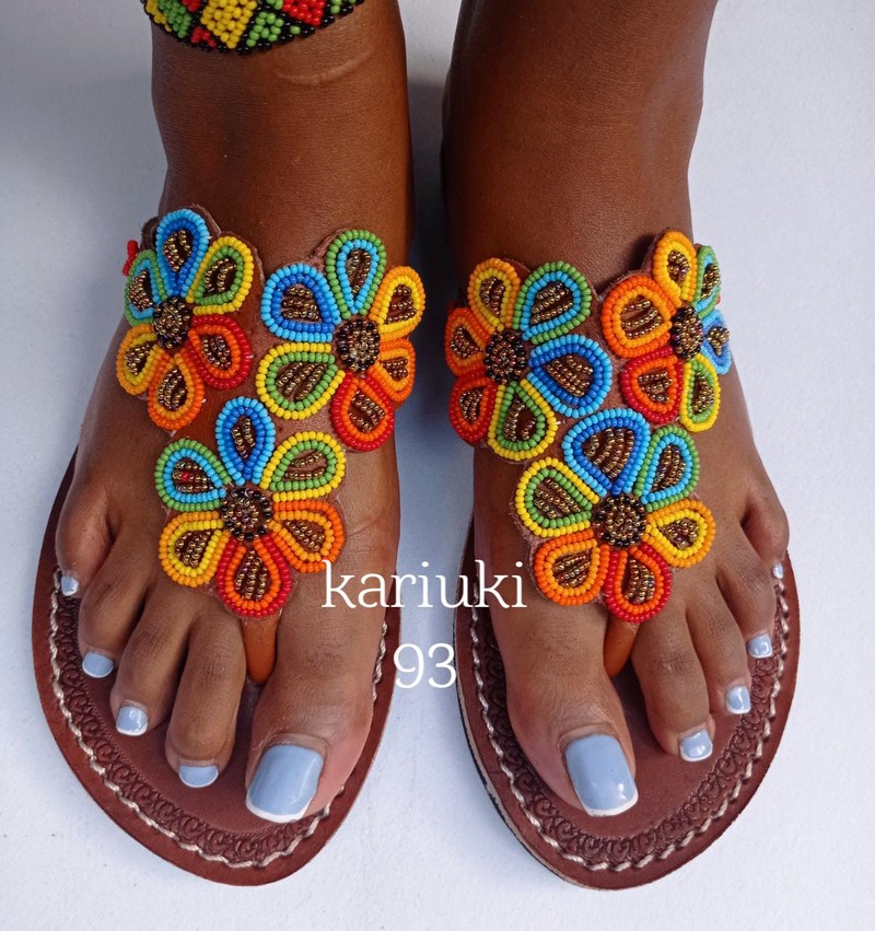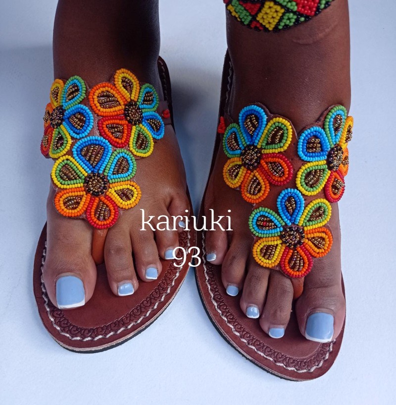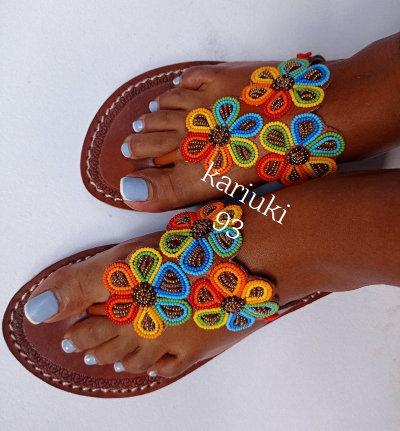 Sandales kenyanes/sandales perlées africaines/sandales femmes/cadeau pour elle/Tongs/sandales perlées