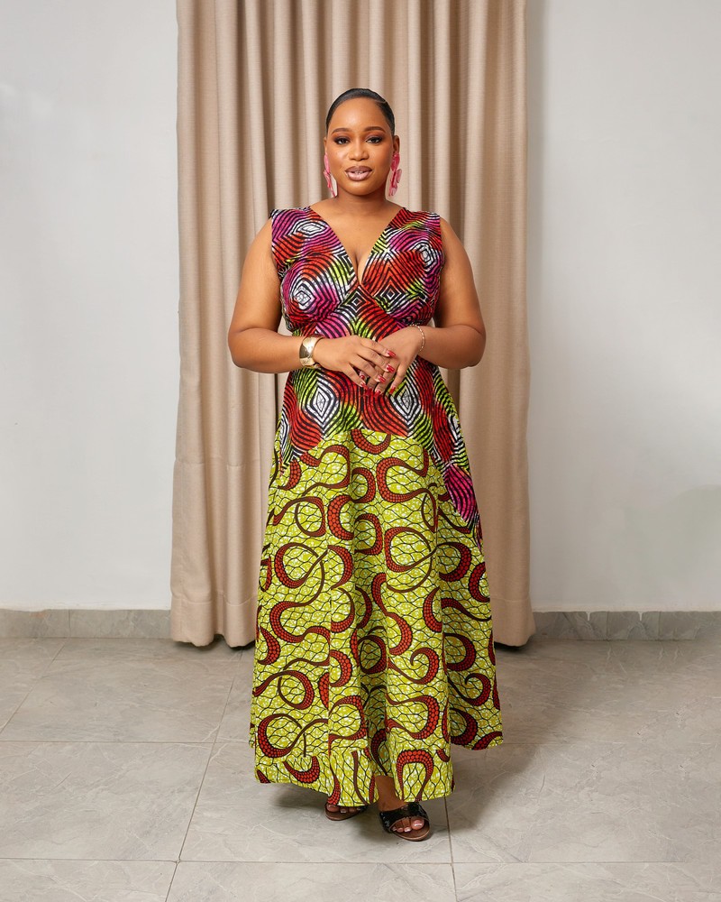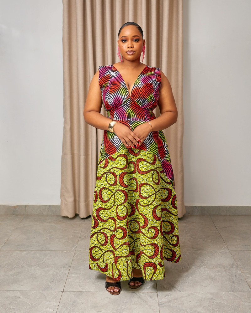 The Iza African Print Maxi dress adds an element of elegance and sophistication, while the full-length cut exudes grace and style. Made from high-quality materials, this maxi dress offers both comfort and durability, allowing you to dance the night away or stroll along the beach with ease. The flowing silhouette accentuates your curves and creates a mesmerizing look that will turn heads wherever you go. This dress puts you in control of your style. Featuring a strategically placed, adjustable zipper slit, you can effortlessly customize your look. Keep it alive or reveal a little more, depending on your mood and the occasion. THE IZA AFRICAN PRINT MAXI DRESS DETAILS: -Iza African Print Maxi dress -Made with 100% Cotton African print Fabric - Side pockets - Garments have no stretch