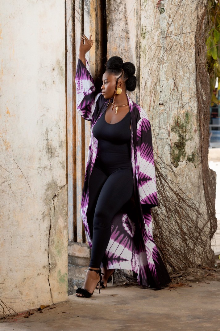 Sa coupe longue et majestueuse sublime chaque mouvement, tandis que ses couleurs chatoyantes révèlent toute ta lumière.