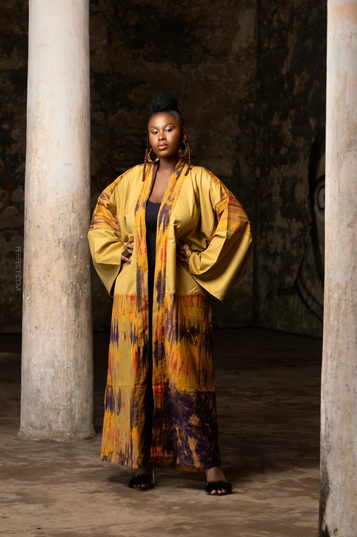 Plongez dans l’élégance afro-contemporaine avec ce kimono long oversized, véritable pièce maîtresse de style. Confectionné en kokodunda tie & dye aux nuances vibrantes et en coton uni, il marie tradition et modernité avec subtilité.