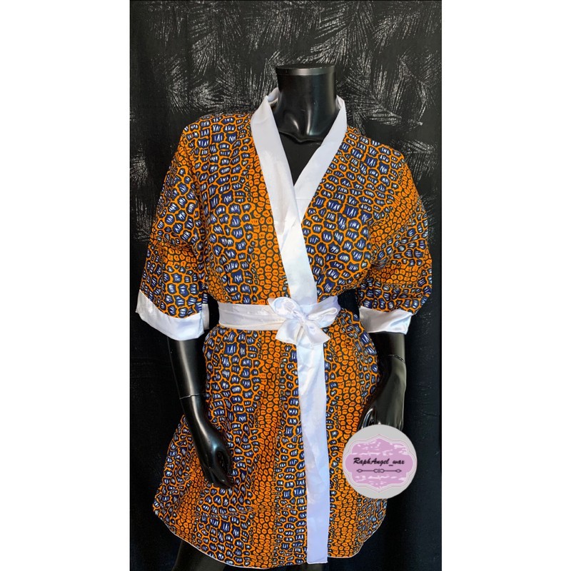 Kimono en wax, bordures et ceintures en satin