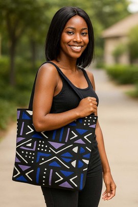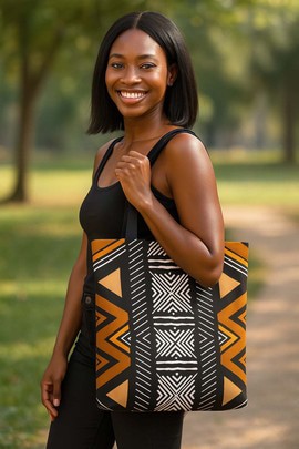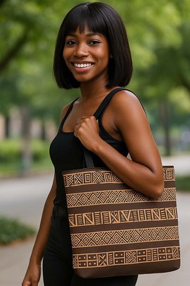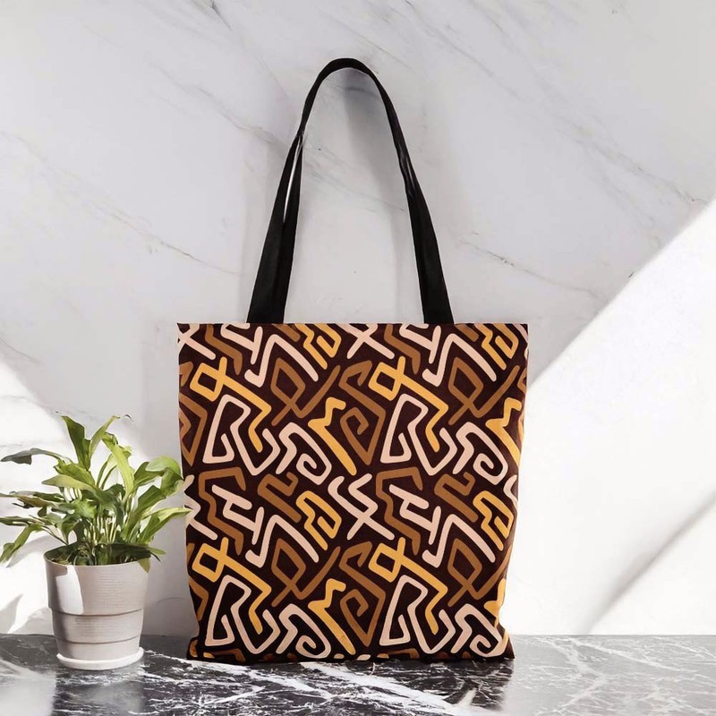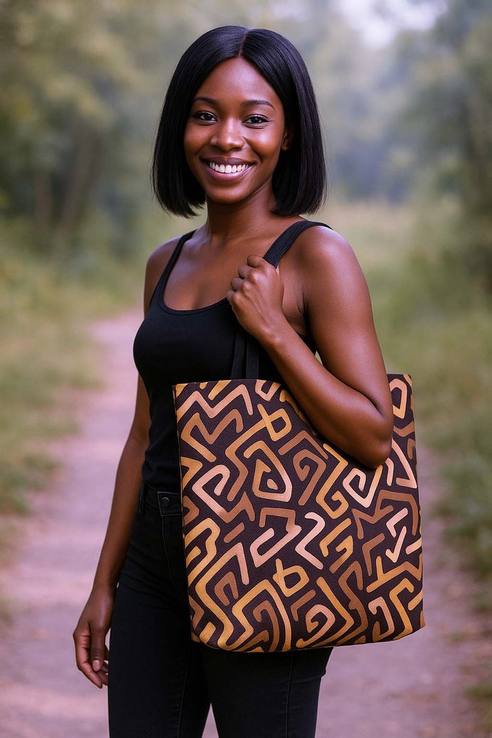 Take on the world with our Kuba African tote bags! Featuring a bold and expressive Afrocentric doodle print, these bags are not just stylish but also spacious with a large capacity. Stand out from the crowd and embrace your adventurous side with these unique tote bags.