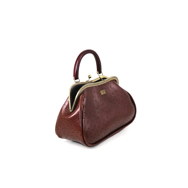 This bag is made from leather with a bronze tone frame. The leather used for this bag is leather scraps mainly off cut leather from bag making factories in Europe which has been upcycled or otherwise reused to make this beautiful piece. The base of the bag is about 12 inches in length with a width of 5.5 inches and a height of 8 inches from the base to the handle. Kusiwaa has beautiful curves and the bronze tone frame gives it a vintage feel as well as a modern feel.