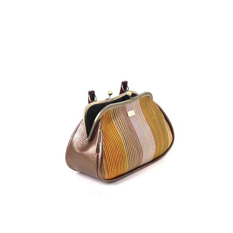 • Exterior:leather, bronze tone frame & Fugu Fabric