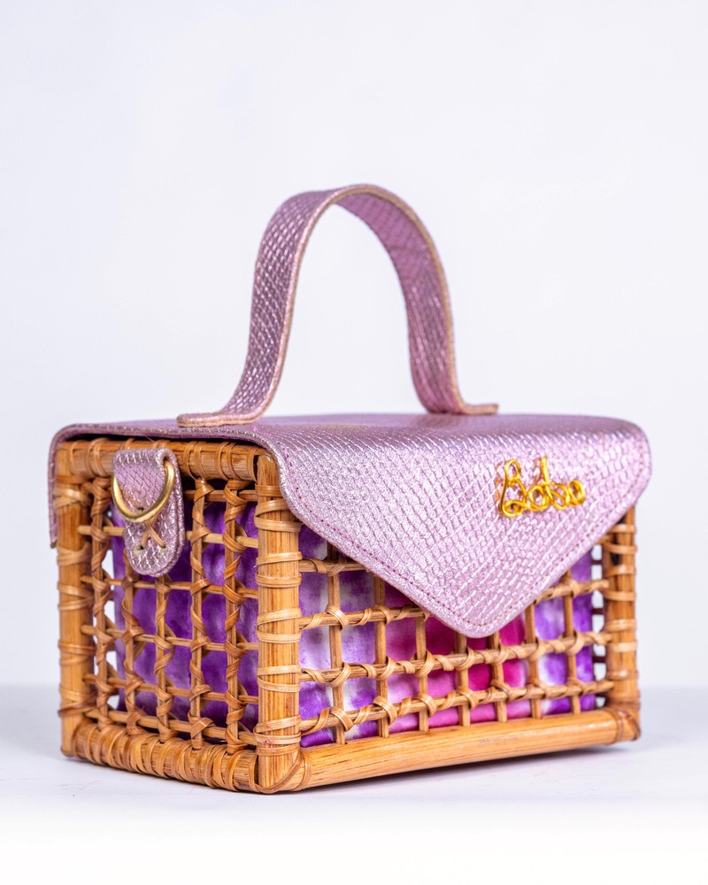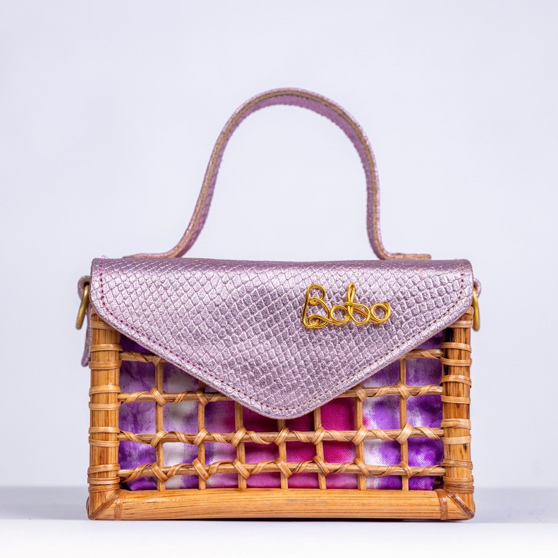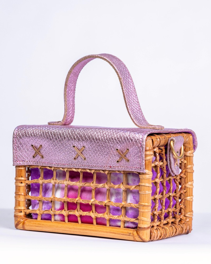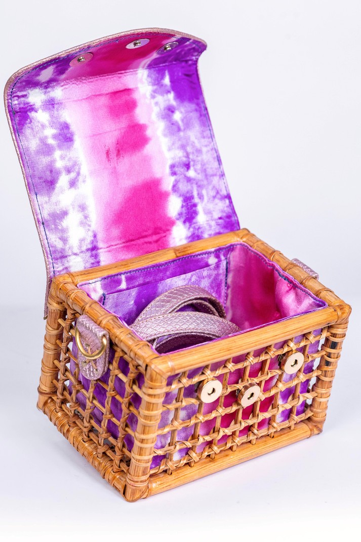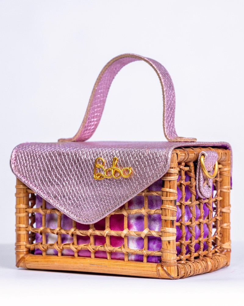 Lilac- carry softness with you wherever you go! Sankofa Collection Made with 100% Cane & Eco Leather Sustainably dyed Intricately Woven Made in Ghana🇬🇭 Dimensions; Breadth: 5inches Height: 4.5inches Length: 7inches