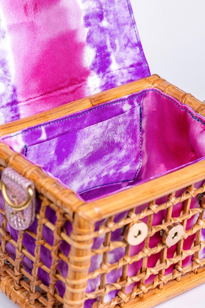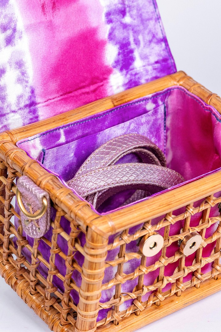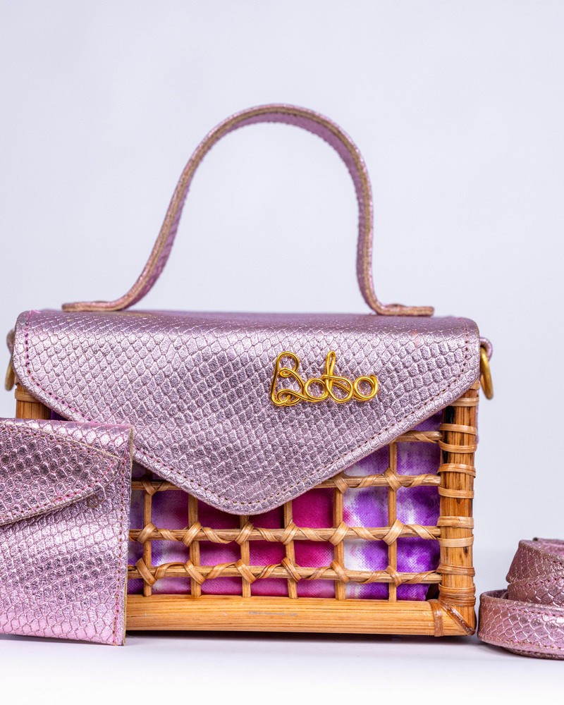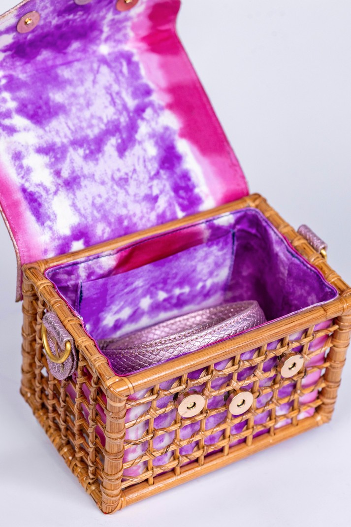 Lilac- carry softness with you wherever you go! Sankofa Collection Made with 100% Cane & Eco Leather Sustainably dyed Intricately Woven Made in Ghana🇬🇭 Dimensions; Breadth: 5inches Height: 4.5inches Length: 7inches