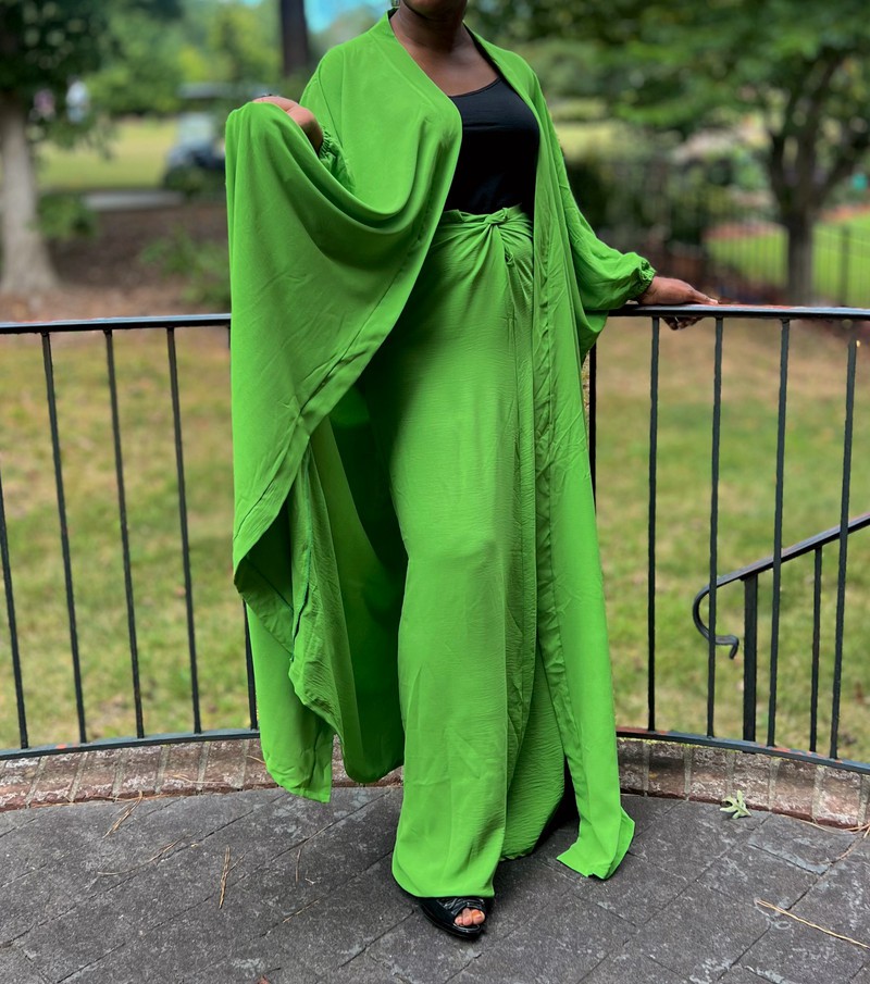 Two Piece Oversized crepe Maxi Cardigan top and wrap Skirt set Crepe Great for any occasion