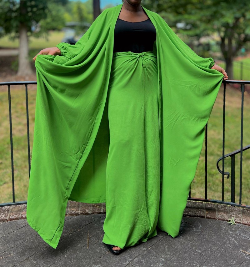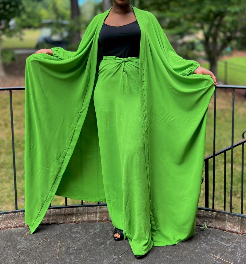 Two Piece Oversized crepe Maxi Cardigan top and wrap Skirt set