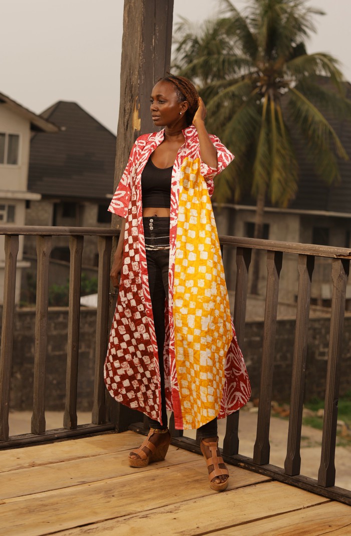 Femme Vestes et Manteaux Vestes longues name_fr: Lâche name_fr: Or name_fr: Pour Elle name_fr: Batik name_fr: Bazin