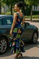 Femme Robes Robes longues Coupe: Poupée Couleur: Bleu Genre: Pour Elle Matière: Wax