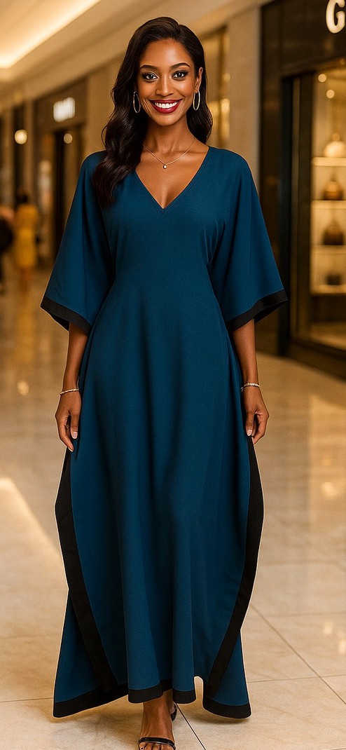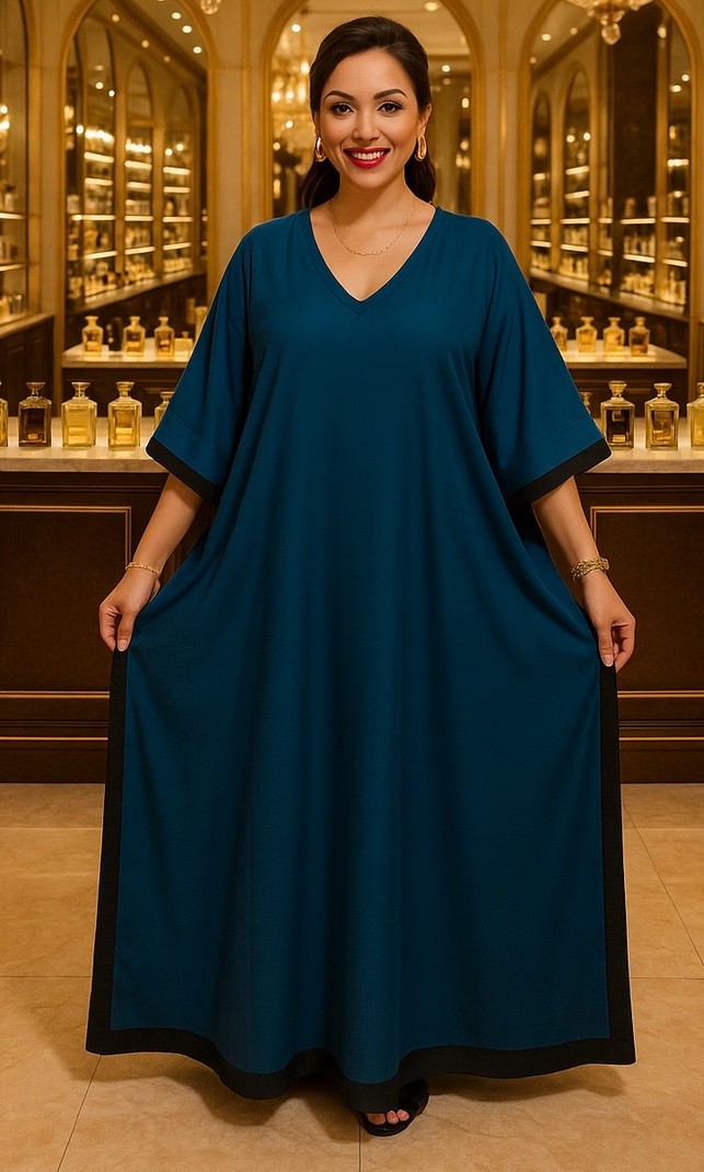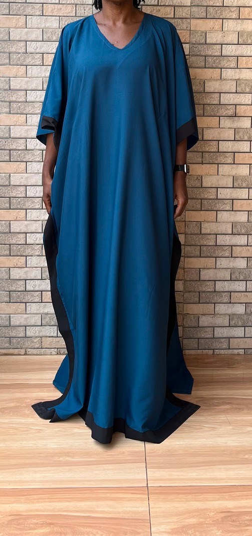 Boubou couleur cyan et noir , pour toutes occasions avec ou sans bijoux
