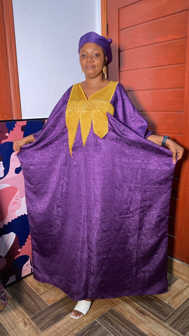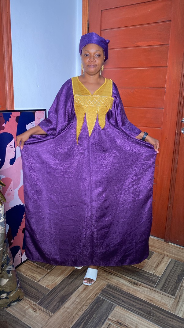 Très Beau boubou en tissu Damask brodé avec une corde interne et un Foulard pour femme adapté à toutes les tailles et les occasions. Si vous souhaitez vous démarquer pendant les cérémonies et les sorties c’est fait pour vous.