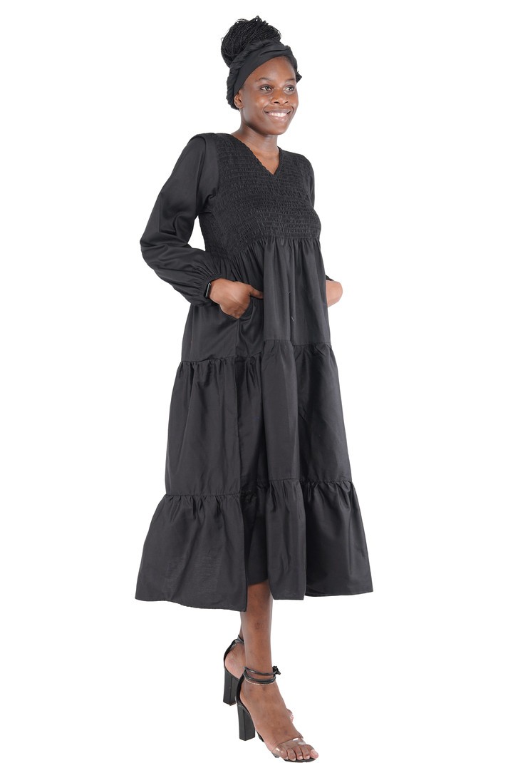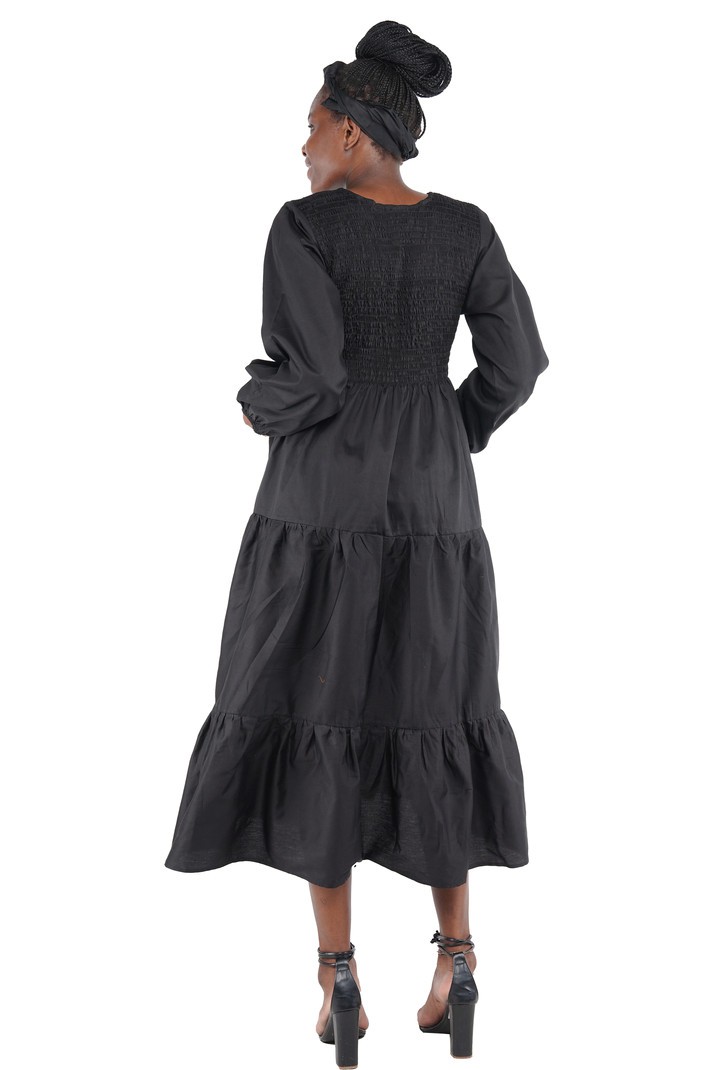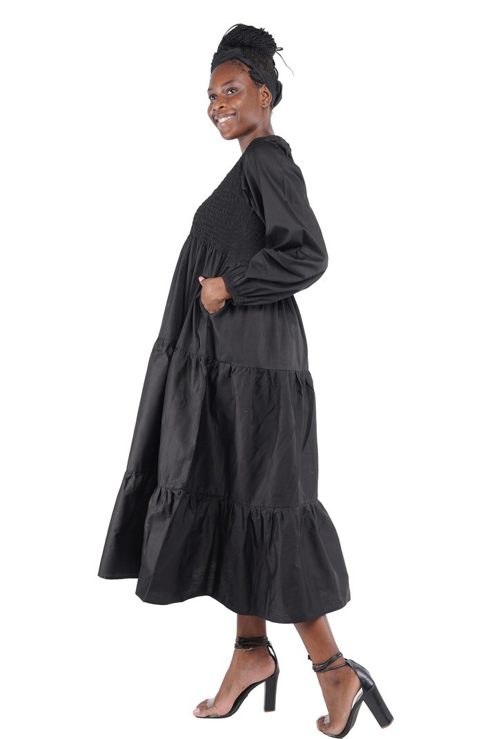 This Long Maxi smocked tier dress is Crafted with 100% cotton and is the perfect choice for a comfortable and stylish look. The tiered design adds dimension and movement while the smocked top provides a flattering and secure fit. Elevate your wardrobe with this versatile and on-trend dress.