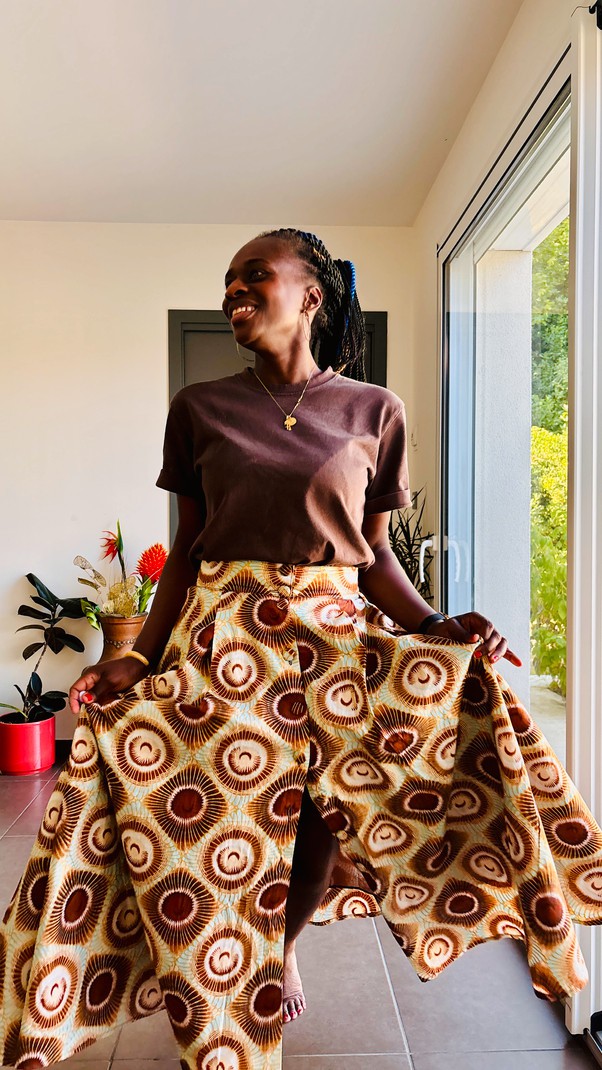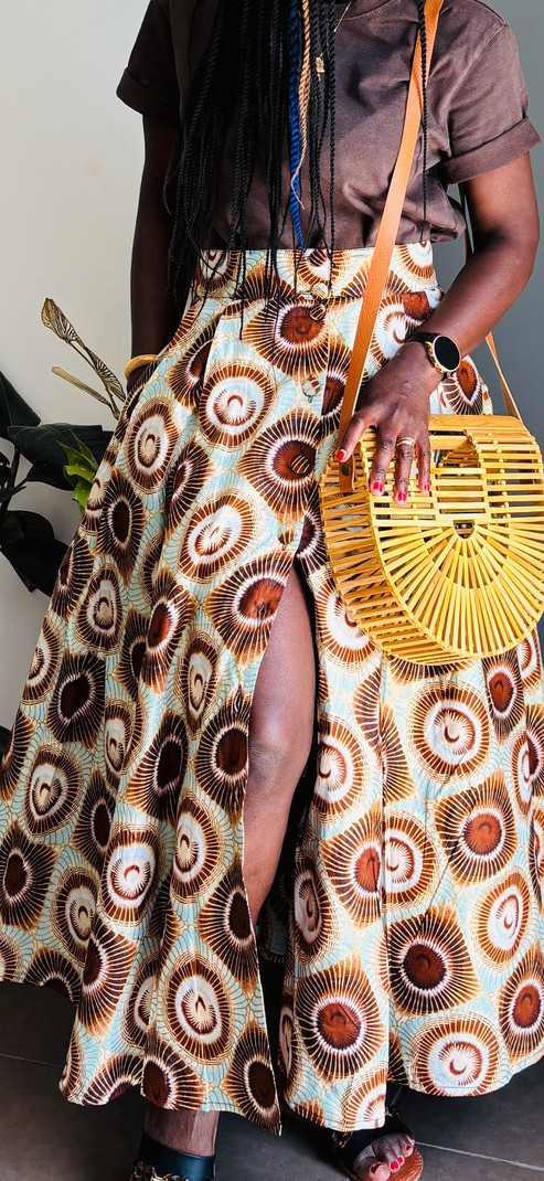 Jupe longue africaine en tissu Wax léger jupe boutonnée AUDREY