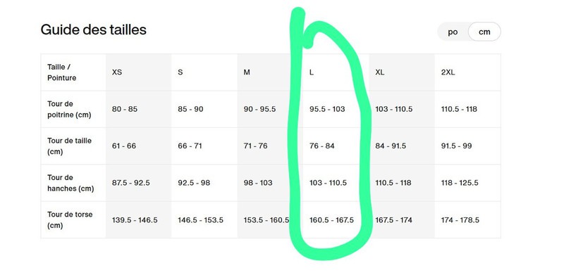 | 14 ans | 59.8" - 64.6"152 - 164 | 32.3"82 | 27.6"70 | 33.9"86 |
