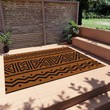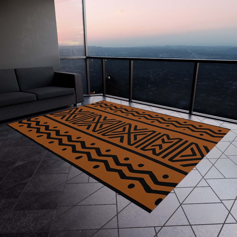 Transform your outdoor space with our Malian Brown Orange and Black Outdoor Rug. This bold and daring floor art carpet adds a touch of adventure to any patio or garden. With its durable design, take risks and explore the outdoors in style!