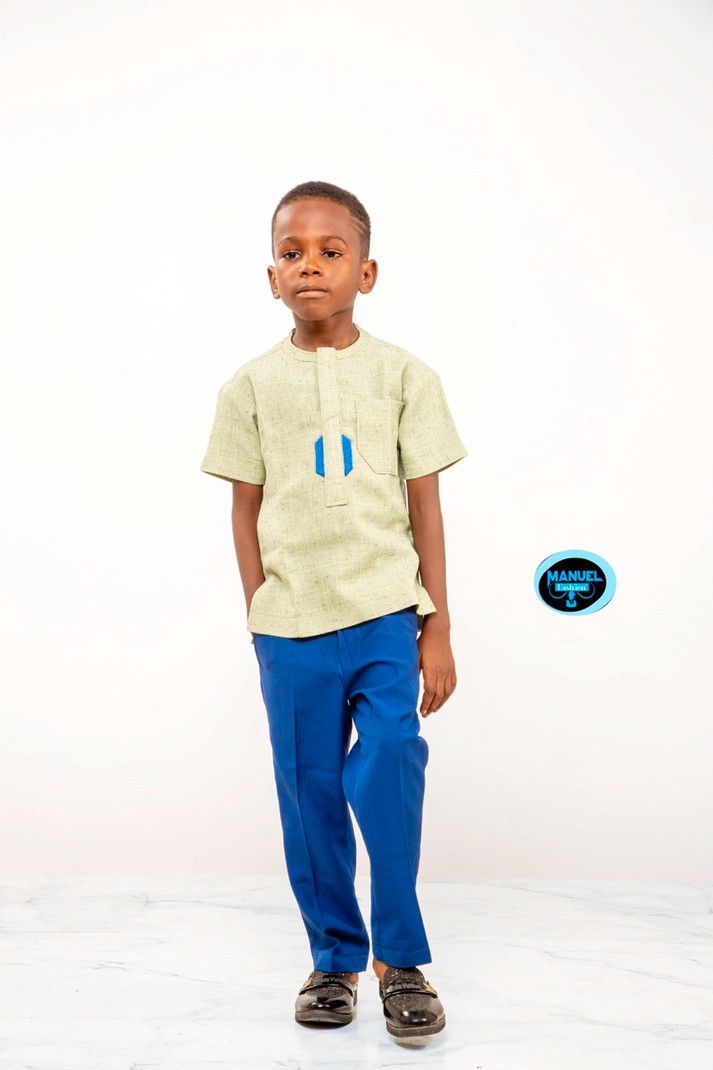 Dress your little one in timeless elegance with the Manuel Fashion Olive Green Traditional Tunic Set! This charming ensemble features a light olive green tunic with short sleeves and a subtle blue accent on the chest, paired with matching blue slim-fit trousers. The textured fabric adds a touch of sophistication, making it perfect for cultural events, family gatherings, or special occasions. Designed for comfort and style, this set ensures your child looks polished while feeling at ease all day long. Features: Light olive green tunic with a subtle blue chest accent Matching blue slim-fit trousers for a sleek look Textured fabric for added sophistication Lightweight and breathable for all-day comfort Ideal for cultural celebrations or formal events Measurements Required (please provide the following in inches): Neck Around Sleeve Length Shoulder Width Chest Around Tunic Length Waist Around Hips Around Leg Length Ankle Around