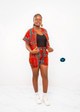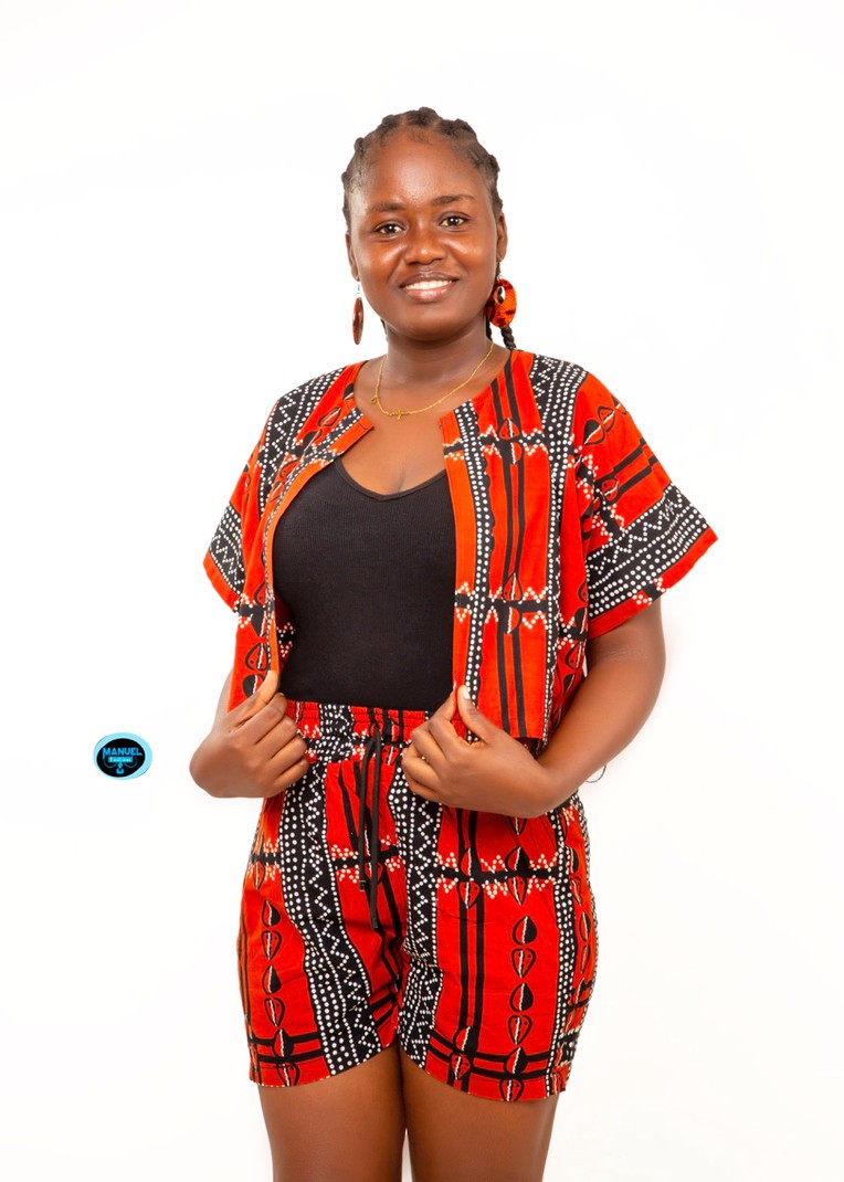 Make a bold statement with the Manuel Fashion Red Orange Traditional Kimono and Shorts, a vibrant ensemble that celebrates cultural elegance with a modern twist! This striking outfit features a loose-fitting kimono jacket with a stunning orange and black geometric pattern, paired with matching high-waisted shorts for a chic, coordinated look. Perfect for African traditional weddings, festivals, Black History Month celebrations, graduations, church events, parties, or any ethnic gathering, the lightweight and breathable fabric ensures all-day comfort and coolness, even in warm weather. Pair these versatile pieces with your favorite top for a stylish, culturally rich appearance. Note: The black inner top is not included. Features: Eye-catching orange and black geometric pattern Loose-fitting kimono jacket for a relaxed vibe Matching high-waisted shorts for a cohesive look Lightweight and breathable fabric for comfort Measurements Required (please provide in inches): Neck Around Sleeve Length Wrist Around Shoulder Width Trouser Waist Around Hips Around Lap Around Leg Length Ankle Around