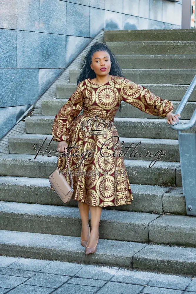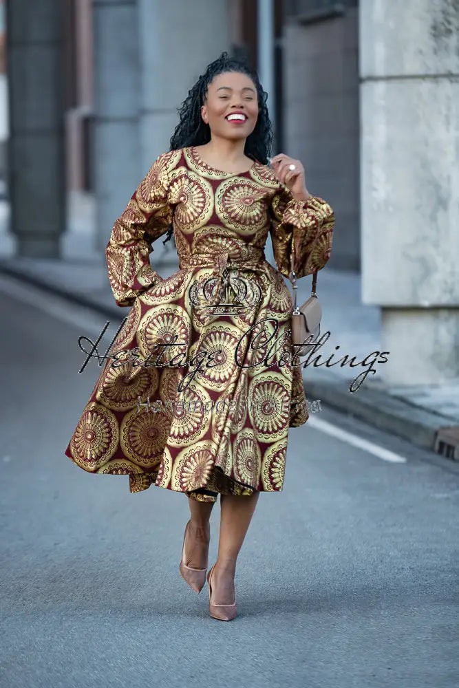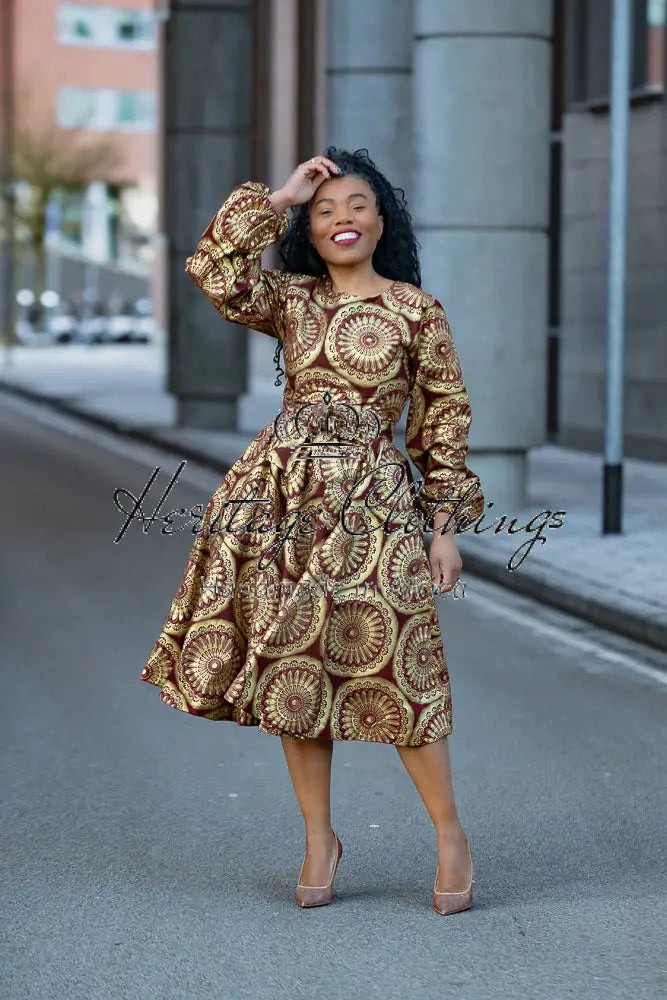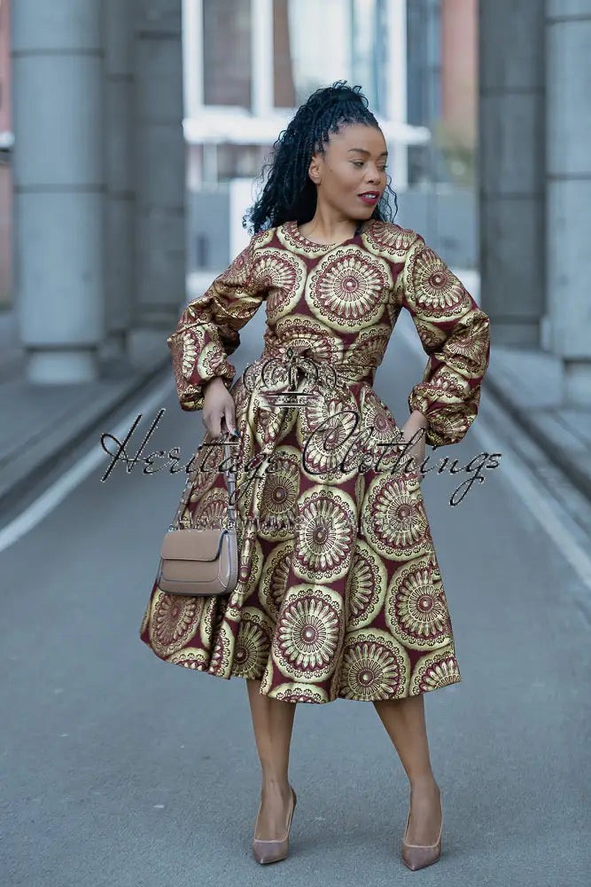 When you wear the Mariama Midi Dress you are clearly calling for attention! This beautiful knee-length dress is fit for a Queen. We love the long sleeve which is versatile for day and night wear, the comfort and feel of the material is truly unmatched. PRODUCT DESCRIPTION The dress has a back zip closure. Fully lined. Waist belt included 2 side pockets Dress length is 45 inches 100% cotton, no stretch. Handmade in Nigeria. Model is wearing size Small LOOK AFTER ME Hand wash separately using a mild detergent and cold water. Press on the reverse side with a cool iron. Do not machine wash. Do not bleach.