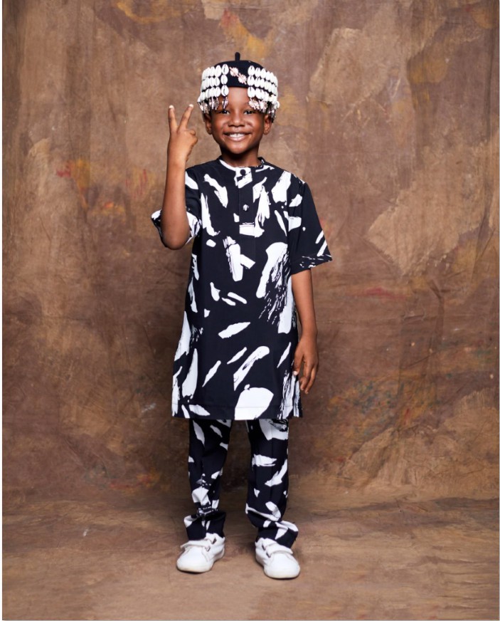 Osez l'expression artistique au masculin avec cet ensemble deux pièces au motif abstrait noir et blanc. À mi-chemin entre l’élégance contemporaine et la décontraction maîtrisée, il offre une silhouette moderne et structurée, pensée pour nos petits bouts de chou qui cultivent leur singularité.