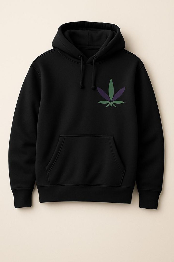 Sur la poitrine, un logo brodé Goodluck se distingue : une feuille stylisée en dégradé de vert profond et violet sombre. Subtile mais affirmée, cette finition apporte une signature urbaine unique qui renforce l’identité de la marque.