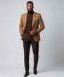 Upgrade your style with this elegant camel blazer paired with deep-brown tailored trousers. This set combines rich tones, premium fabric, and a clean slim-fit silhouette that gives a powerful, modern look.