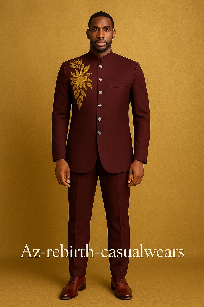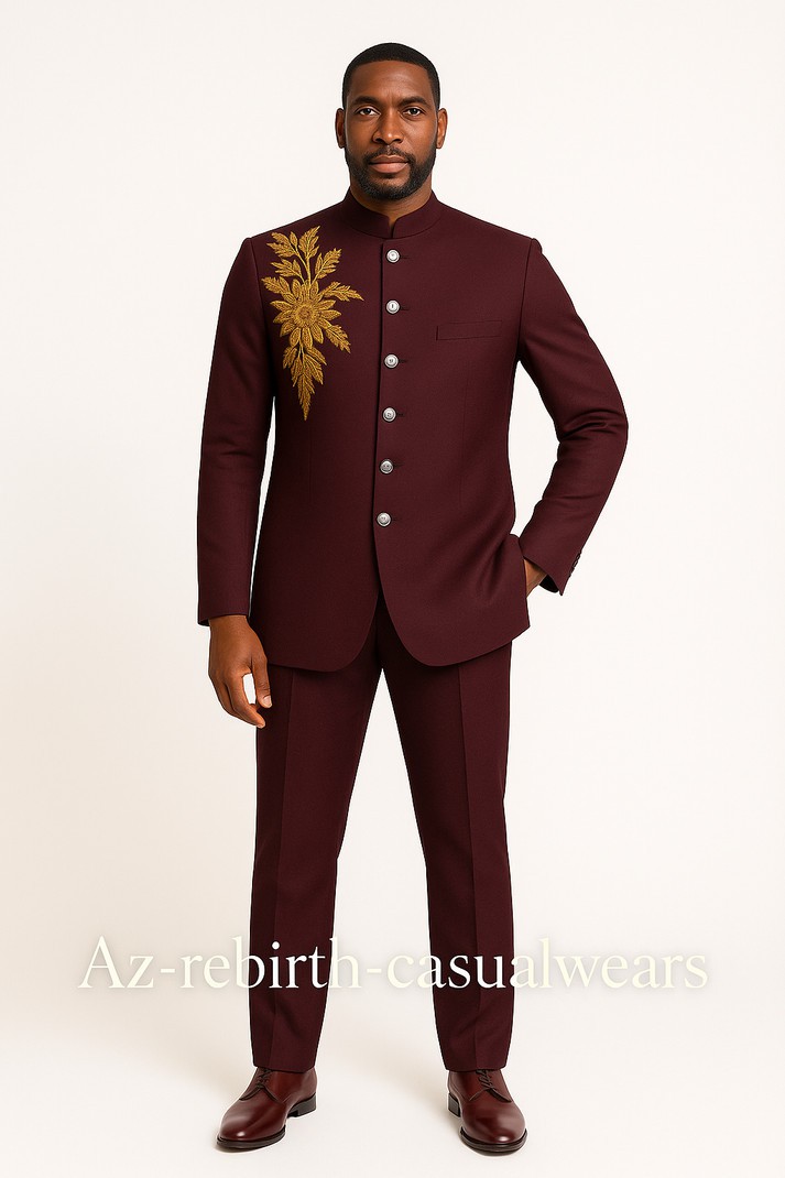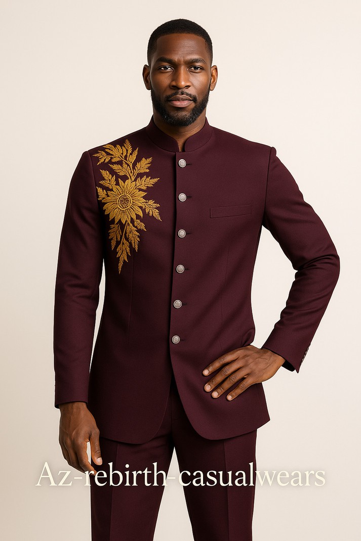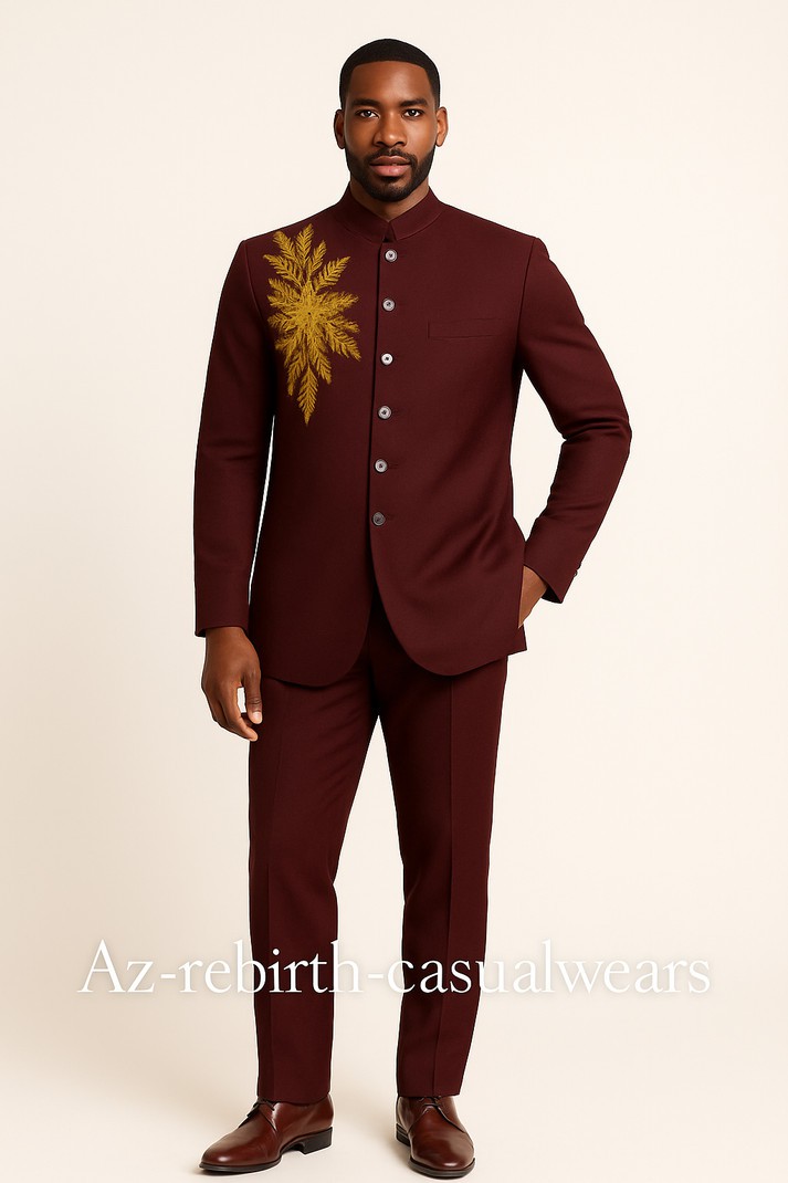 This men's safari suit with embroidery is beautifully crafted with high-quality fabrics. The combination of traditional safari style with intricate embroidery adds a touch of elegance and sophistication. The attention to detail and quality of materials make this suit stand out.