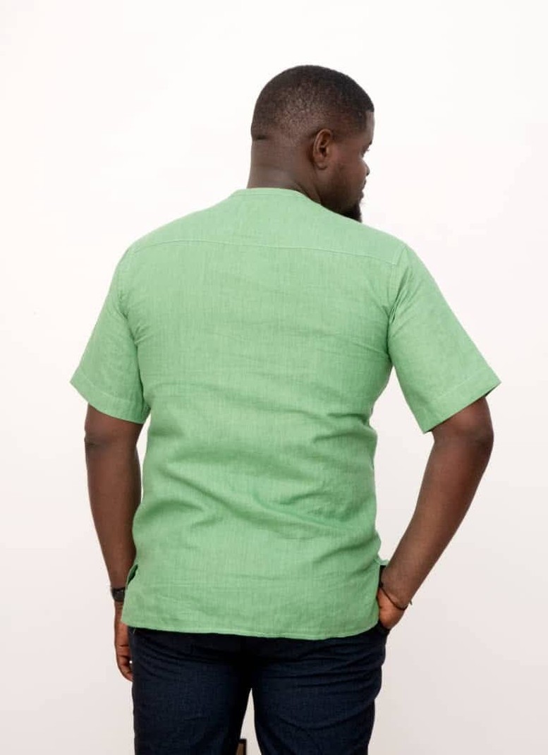 La chemise KEKELI est faite dans du lin vert , doux et agréable à porter.