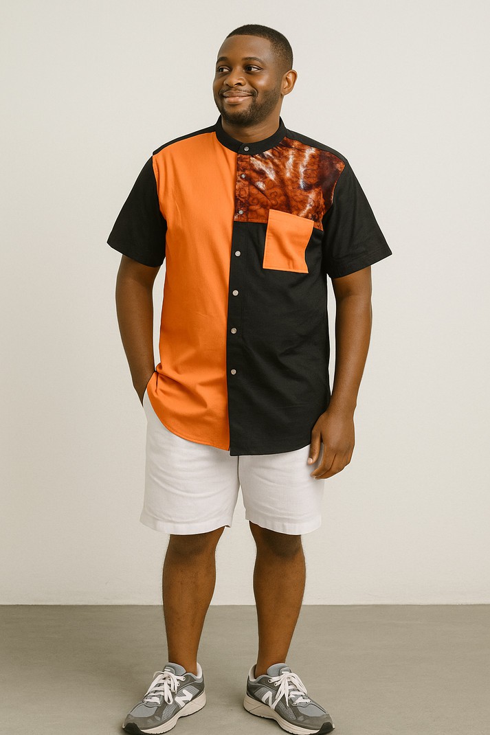 Homme Chemises Chemises manches courtes Homme name_fr: Cheveux Raides name_fr: Orange name_fr: Pour Lui name_fr: Coton name_fr: Bazin