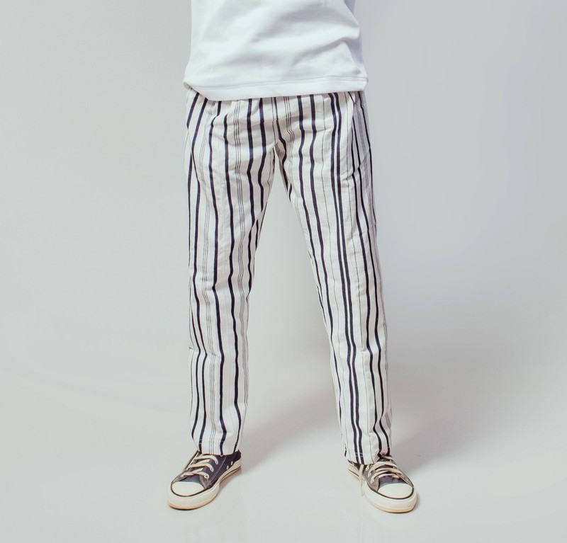 Pantalon en pagne tissé – Blanc & Bleu Marine | Made in Africa