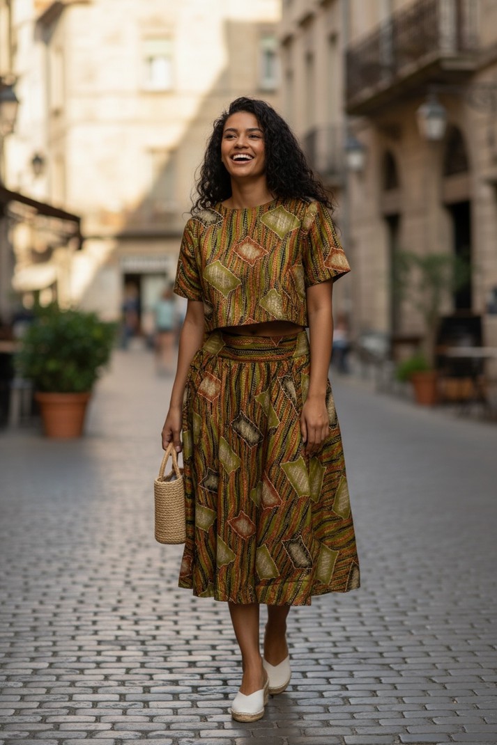 Élégante, fluide et résolument moderne, cette jupe midi en wax Maison AFOUA est une pièce incontournable pour une allure chic au quotidien. Son imprimé riche et sa coupe flatteuse en font une jupe aussi confortable que stylée.