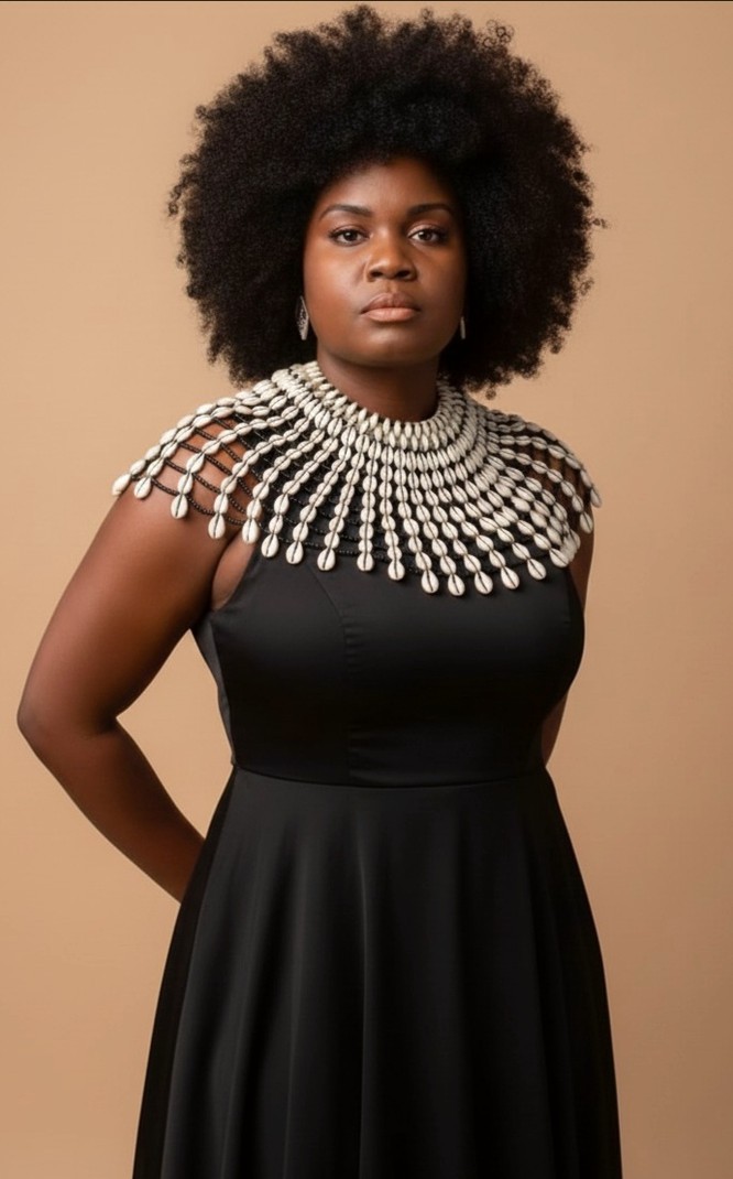 Majesté Cauris est un collier artisanal d’exception, entièrement réalisé à la main avec de véritables cauris sélectionnés pour leur éclat naturel.