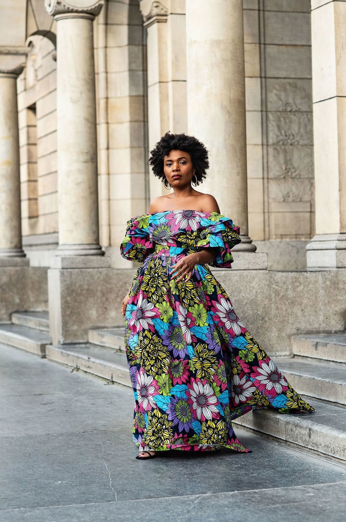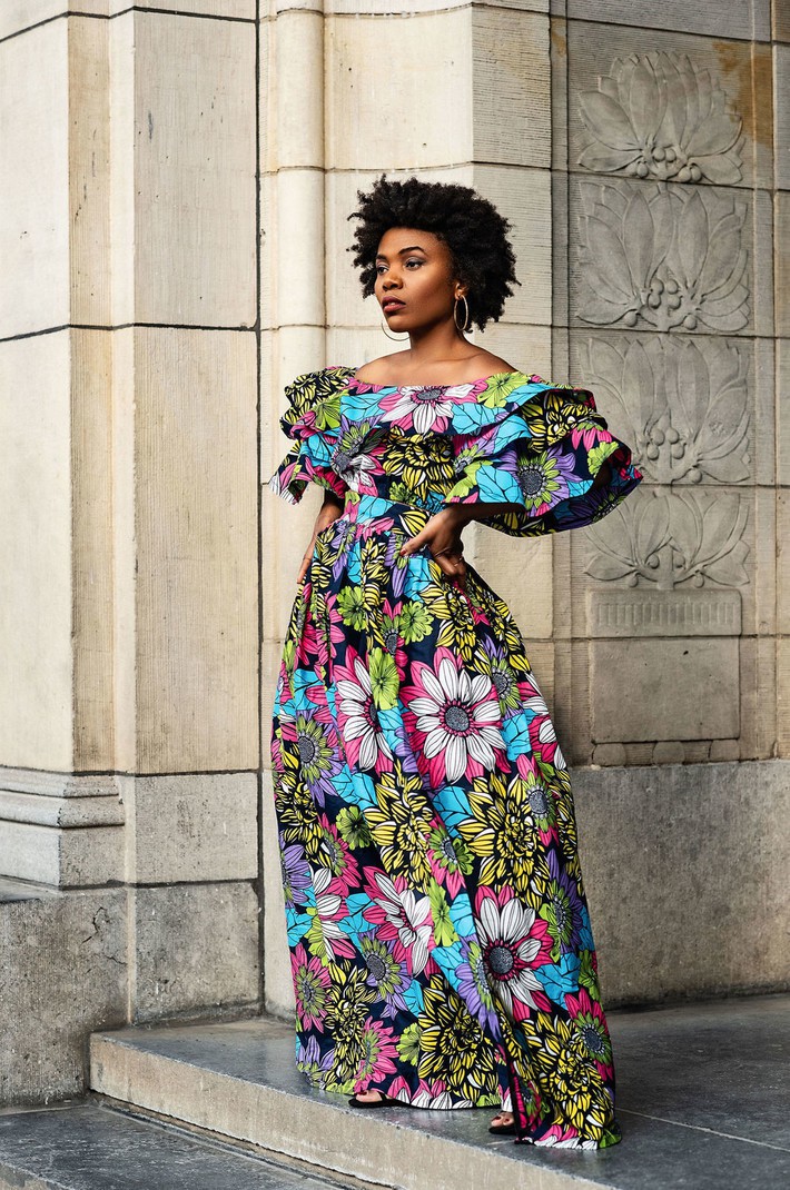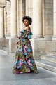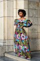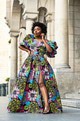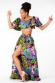 This African wax print multicoloured crop top with cape and maxi skirt is a bold and beautiful two-piece that can be worn together or separately. It is sure to turn heads anywhere it goes! Wear it with the Moremi headwrap for a mama Africa look.