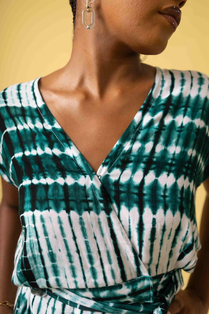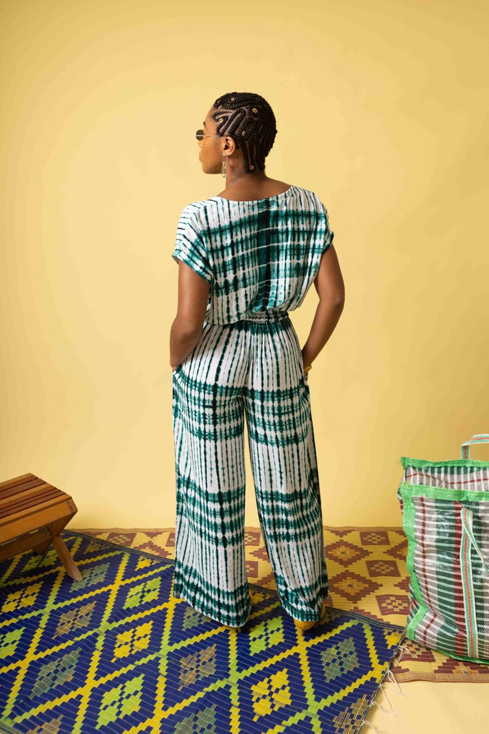 La teinture est faite à la main. Les motifs et les couleurs ont été créés, à notre demande, par une teinturière sénégalaise.