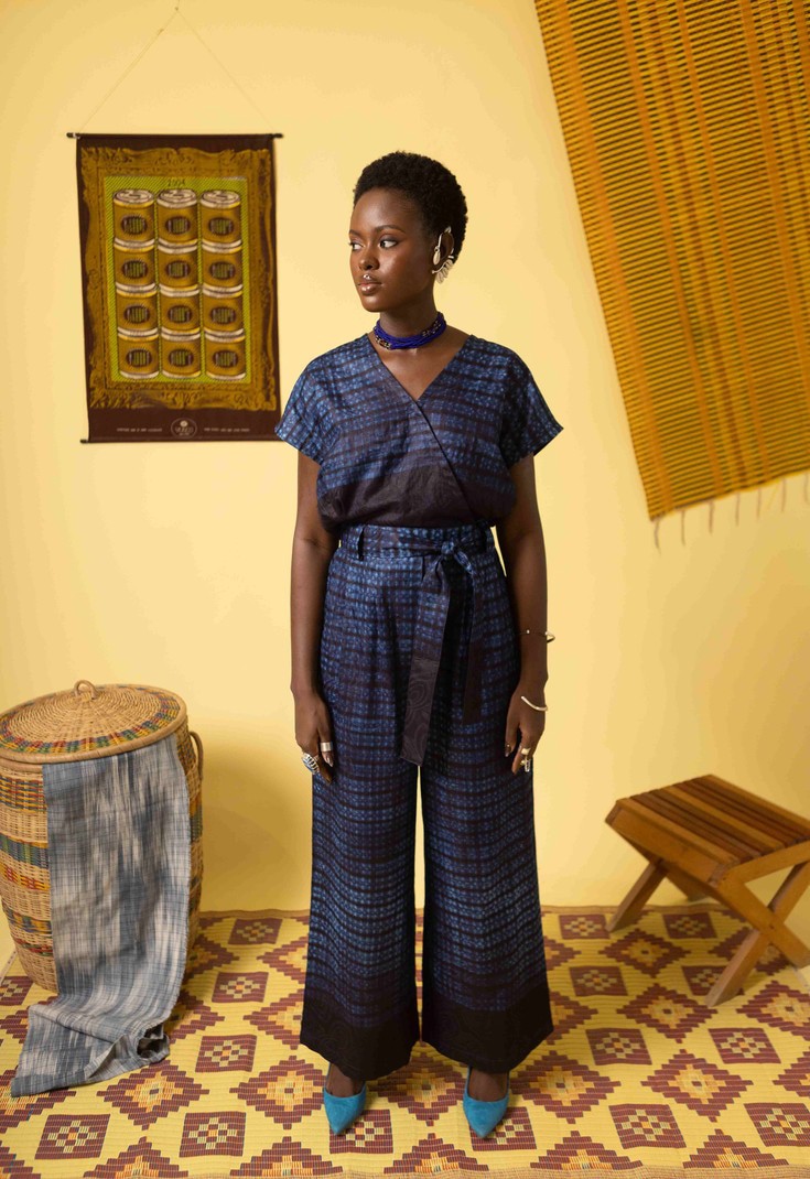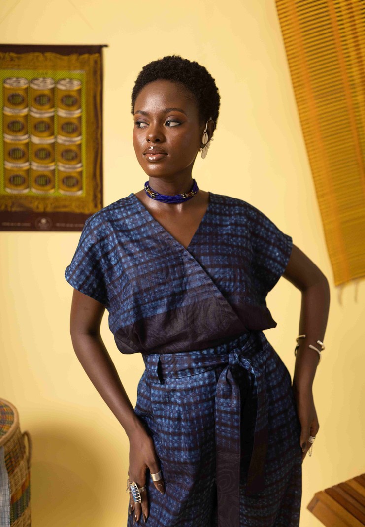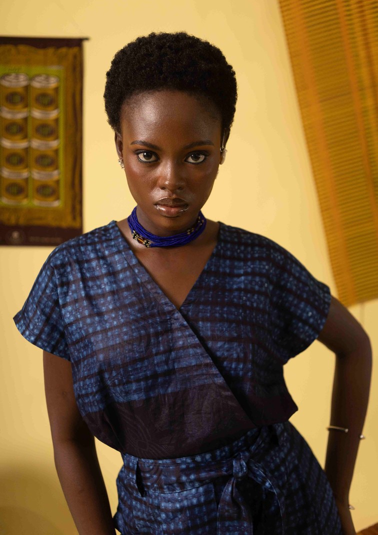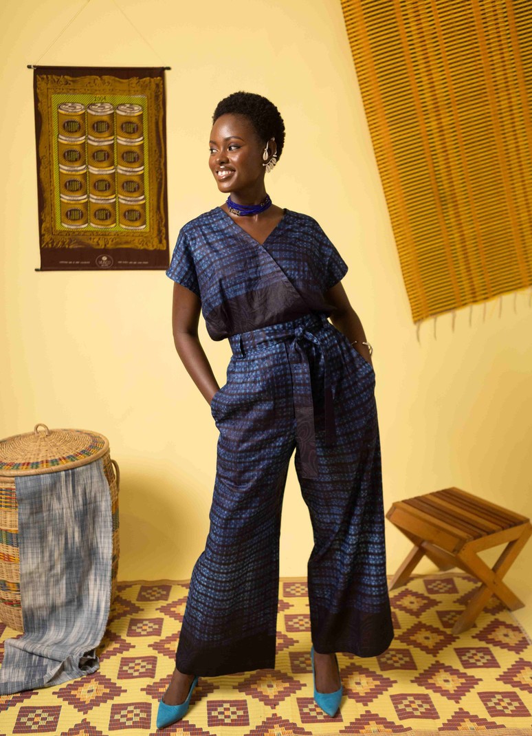 La combinaison Mossane est confectionnée dans un tissu appelé indigo.