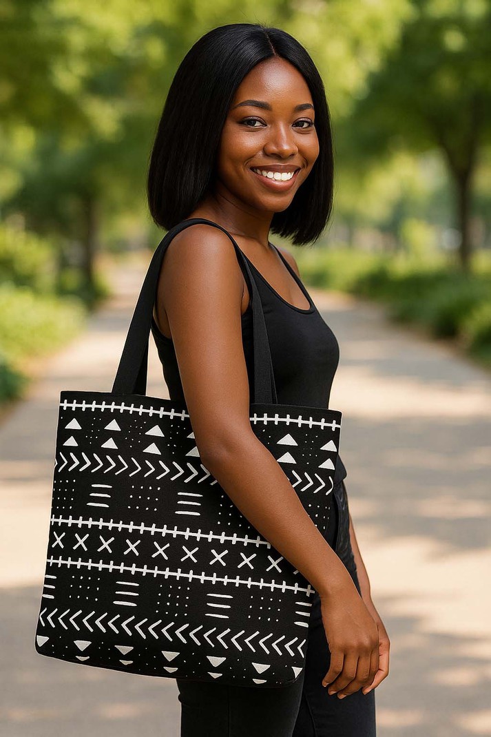 Unleash your adventurous side with our Mud Cloth African Fabric Bags Tote! Made with authentic tribal fashion fabric, this tote boasts a large capacity, perfect for all your on-the-go needs. Take a bold step and add excitement to your everyday with this unique tote. Product Description • 510 g/m2. Made from high-grade canvas. • Durable and roomy enough for your daily items. • Lightweight canvas tote bag with sturdy handle is easy to carry. • Perfect for shopping and carrying your essentials. Delivery Time This item will be processed within 3-7 business days (Excluding Weekends and Holidays). Once products ships it can take up to 15 Business days depending on your location. Out of Stock items can be requested by emailing us at [email protected] Care Instructions Machine wash cold inside out. Gentle cycle with mild detergent and like colors. Do not use bleach or fabric softener. Do not tumble dry. Hang to dry to ensure maximum shelf life. Iron inside out if necessary. Do not iron the print. Do not dry clean.