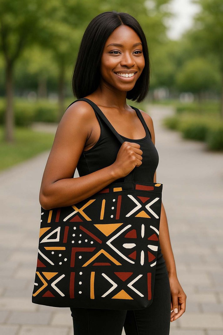 Unleash your adventurous spirit with our Mud Cloth Tribal Tote bags ! Designed with a tribal fashion style and large capacity, these bags are perfect for your daring lifestyle. Embrace the bold patterns and vibrant colors of traditional African prints while having enough space for all your essentials. Product Description • 510 g/m2. Made from high-grade canvas. • Durable and roomy enough for your daily items. • Lightweight canvas tote bag with sturdy handle is easy to carry. • Perfect for shopping and carrying your essentials. Delivery Time This item will be processed within 3-7 business days (Excluding Weekends and Holidays). Once products ships it can take up to 15 Business days depending on your location. Out of Stock items can be requested by emailing us at [email protected] Care Instructions Machine wash cold inside out. Gentle cycle with mild detergent and like colors. Do not use bleach or fabric softener. Do not tumble dry. Hang to dry to ensure maximum shelf life. Iron inside out if necessary. Do not iron the print. Do not dry clean.