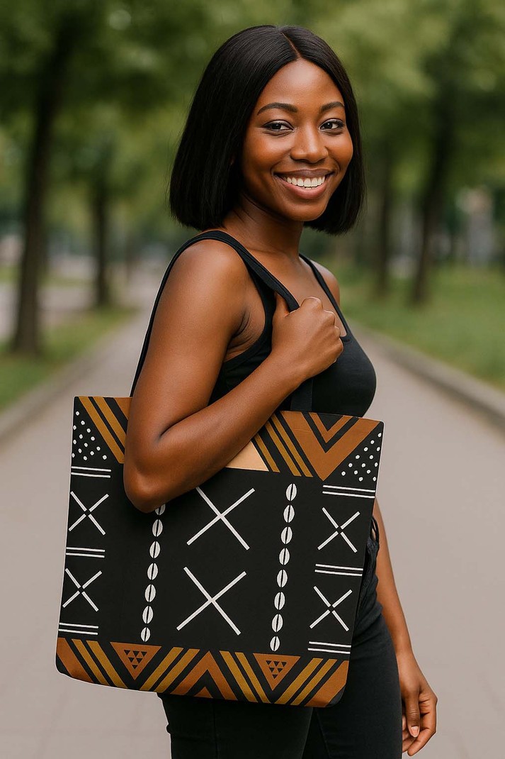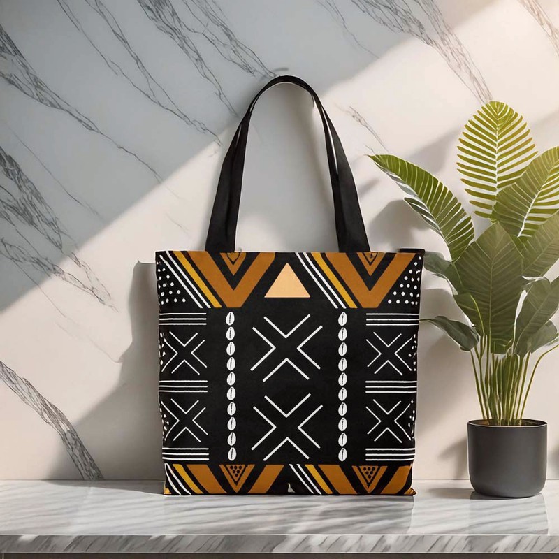 Unleash your bold and adventurous style with our Mudcloth African American tote bags! With a unique geometric fashion design, these bags are not only stylish but also spacious, making them the perfect accessory for any journey. Take on the world and stand out with these eye-catching totes!