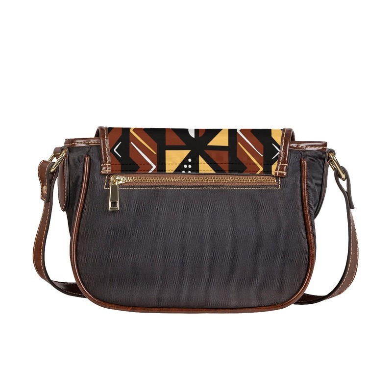 Go on an adventure with our Mudcloth African Leather Bag in traditional saddle style! This versatile bag features authentic mudcloth and durable leather, perfect for any daring journey. Stand out with this unique and stylish accessory that blends culture and fashion.