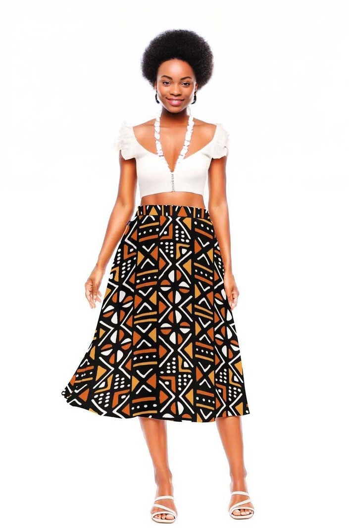 Channel your bold and adventurous spirit with our Mudcloth Afrocentric Skirt. This midi-length fashion statement highlights your unique style while embracing the rich history of traditional African textiles. Stand out from the crowd and make a statement with this daring and vibrant skirt! Product Features Please Compare your Measurements To our Size Chart before purchase Fabric: 100% polyester * Regular fit * Waist elastic band * Fabric weight: 80g/m² Delivery Time This item will be processed within 3-7 business days (Excluding Weekends and Holidays). Once products ships it can take up to 15 Business days depending on your location. Out of Stock items can be requested by emailing us at [email protected] Care Instructions Machine wash cold inside out. Gentle cycle with mild detergent and like colors. Do not use bleach or fabric softener. Do not tumble dry. Hang to dry to ensure maximum shelf life. Iron inside out if necessary. Do not iron the print. Do not dry clean.