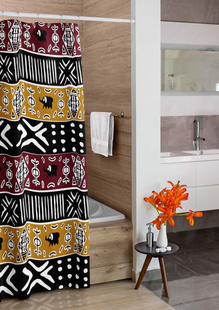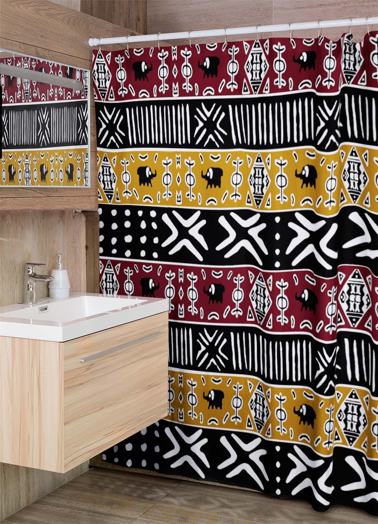 Elevate your bathroom with our Afrocentric mudcloth shower curtain! Bold colors and a unique print will add a touch of adventure and risk to your daily routine. An essential for any lover of bold design and taking risks. Make a statement with our mudcloth colorful shower curtain.