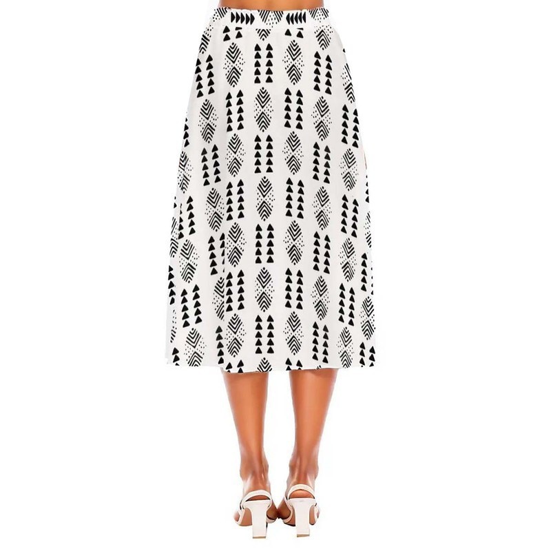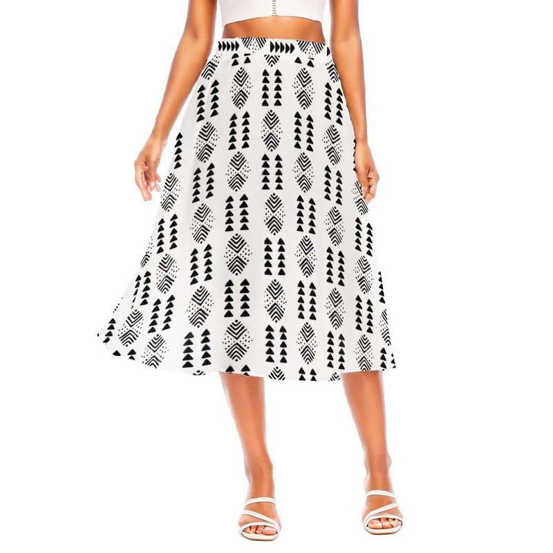 Take on the wild side with our Mudcloth Flared Skirt for Women ! This midi length flared skirt features an authentic mudcloth design, handcrafted in Africa. Perfect for those who dare to stand out and embrace the spirit of adventure. Add it to your wardrobe for a bold and unique addition! Product Features Please Compare your Measurements To our Size Chart before purchase Fabric: 100% polyester * Regular fit * Waist elastic band * Fabric weight: 80g/m² Delivery Time This item will be processed within 3-7 business days (Excluding Weekends and Holidays). Once products ships it can take up to 15 Business days depending on your location. Out of Stock items can be requested by emailing us at [email protected] Care Instructions Machine wash cold inside out. Gentle cycle with mild detergent and like colors. Do not use bleach or fabric softener. Do not tumble dry. Hang to dry to ensure maximum shelf life. Iron inside out if necessary. Do not iron the print. Do not dry clean.