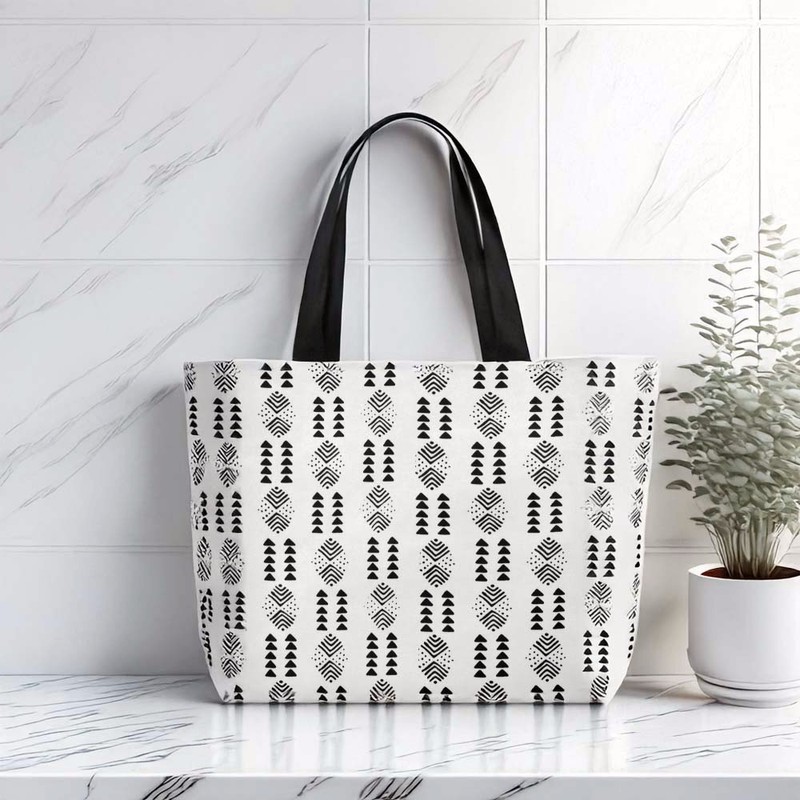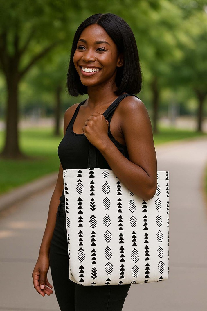 Take on each day with boldness and style with our Mudcloth Tote Bag! Featuring a unique African print design, this tote not only adds a touch of culture to your outfit, but also offers a spacious capacity for all your essentials. Embrace your adventurous spirit and make a statement with this must-have fashion accessory! Product Description • 510 g/m2. Made from high-grade canvas. • Durable and roomy enough for your daily items. • Lightweight canvas tote bag with sturdy handle is easy to carry. • Perfect for shopping and carrying your essentials. Delivery Time This item will be processed within 3-7 business days (Excluding Weekends and Holidays). Once products ships it can take up to 15 Business days depending on your location. Out of Stock items can be requested by emailing us at [email protected] Care Instructions Machine wash cold inside out. Gentle cycle with mild detergent and like colors. Do not use bleach or fabric softener. Do not tumble dry. Hang to dry to ensure maximum shelf life. Iron inside out if necessary. Do not iron the print. Do not dry clean.
