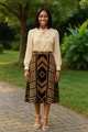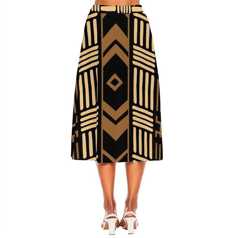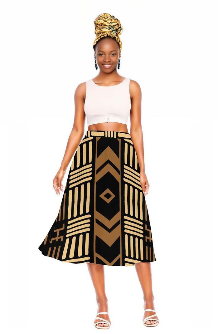 Unleash your wild side with our Mudcloth Tribal Pattern Skirt. Made for the risk-takers, this midi length skirt features a bold tribal pattern that will add an adventurous touch to your wardrobe. Step out of your comfort zone and make a statement in this unique fashion piece.
