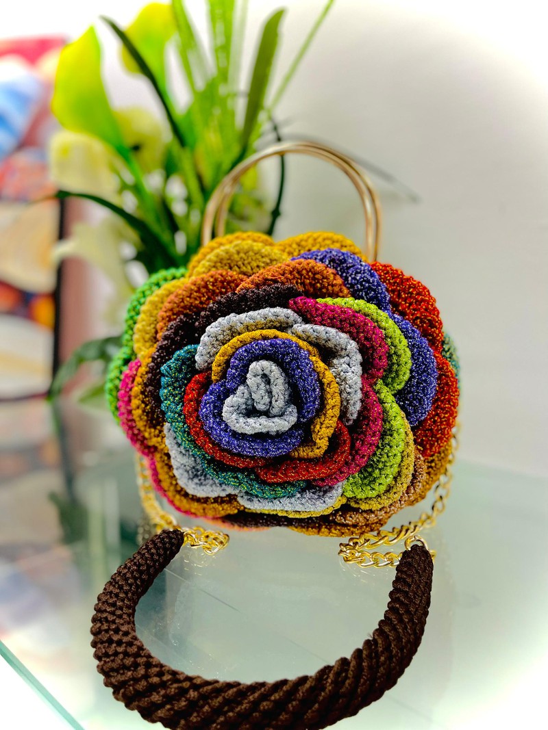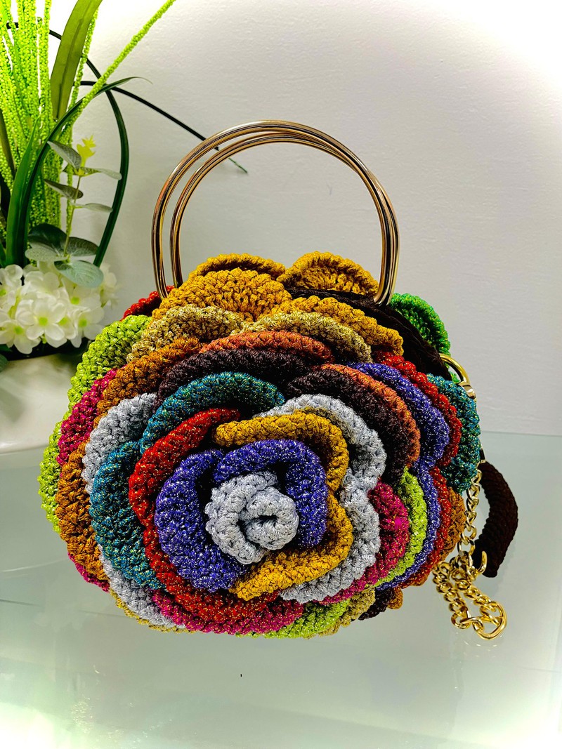 Color: Multicolour • Material: Thick, textured material, polyester yarn • Design: A large, blooming rose. • Strap: A gold chain serves as the strap Additional Information - Bag can be made in any color and size. - Bags are custom made on order, Clients get to be part of the productivity - Production takes 3-7days - Delivery within 3- 16 days Dimensions - Diameter: Roughly 20-25 cm (8-10 inches) - Depth: About 8- 10 cm (3-4 inches) - Medium round bags are versatile for daily use and can hold items like a wallet, phone, and a few cosmetics. These bags are compact and perfect for carrying essentials like keys, phone, Refunds and exchanges - Worn items are not refunded - Return shipping fees are at your charge and not refunded. Condition: New item.