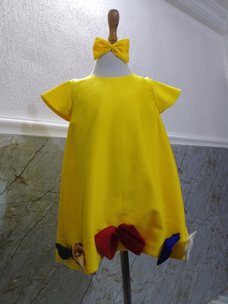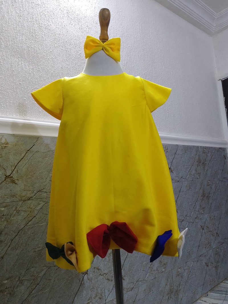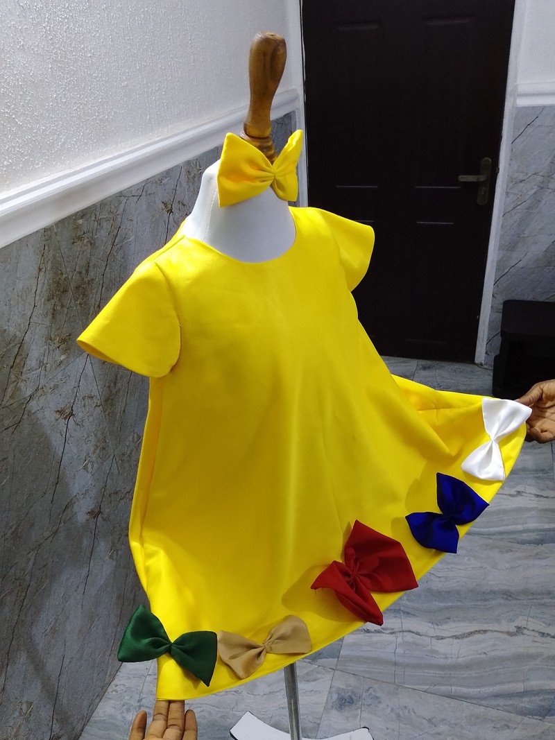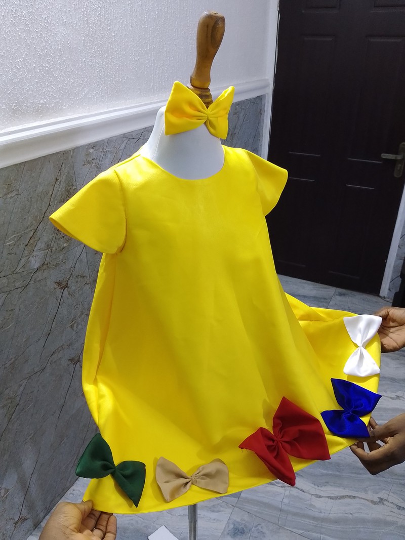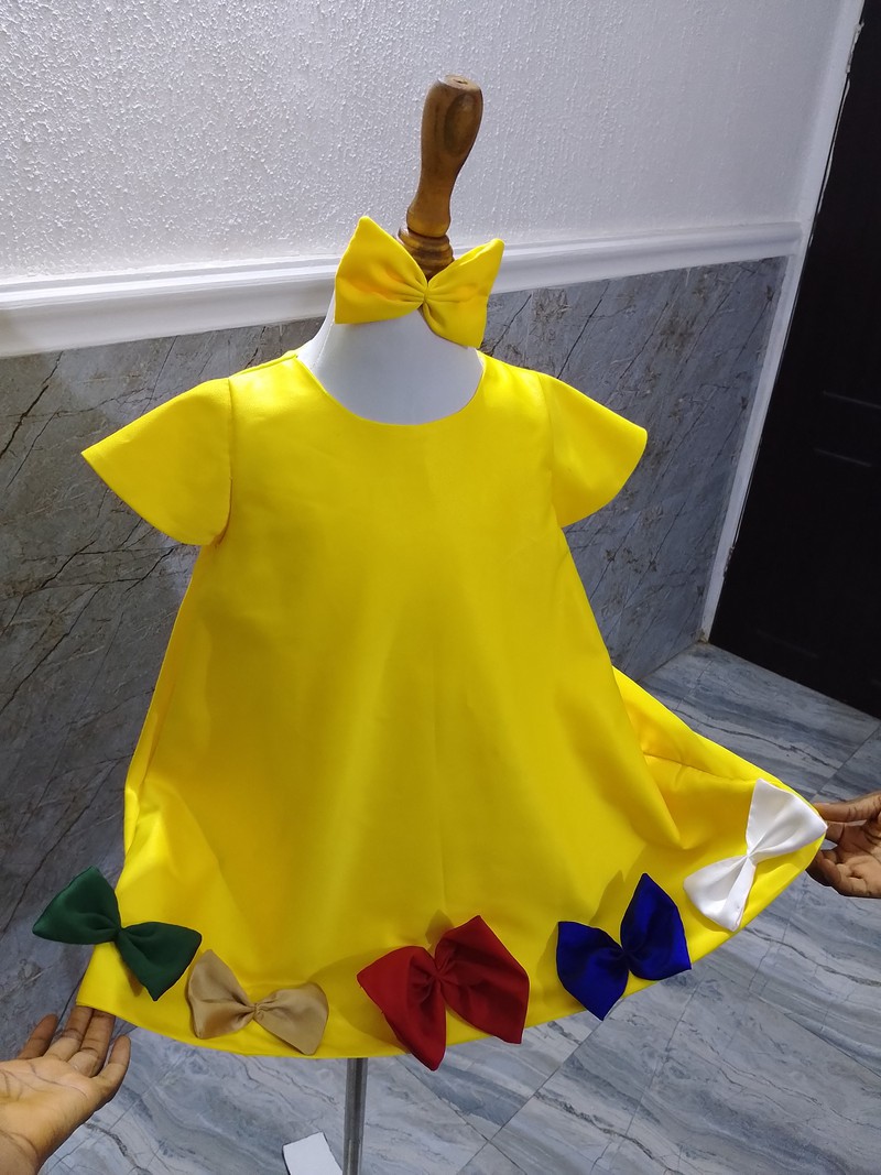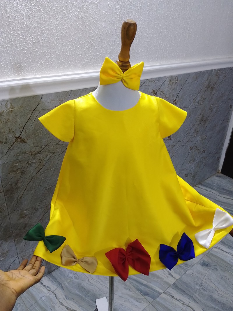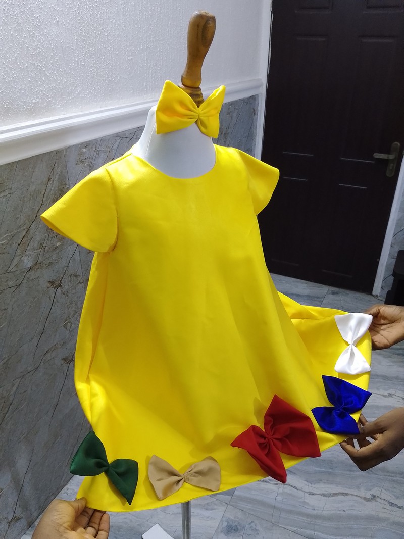 This beautiful dress is made with a high quality fabric. Each dress comes with a hairbow, This item is customizable, you can order it in another color just state the color by sending us a direct message; we can also add additional designs as needed at an extra cost. Note age is from (0 to 12 years) This can be a short or midi length dress. As you desire. This can be customized into any color of your choice.