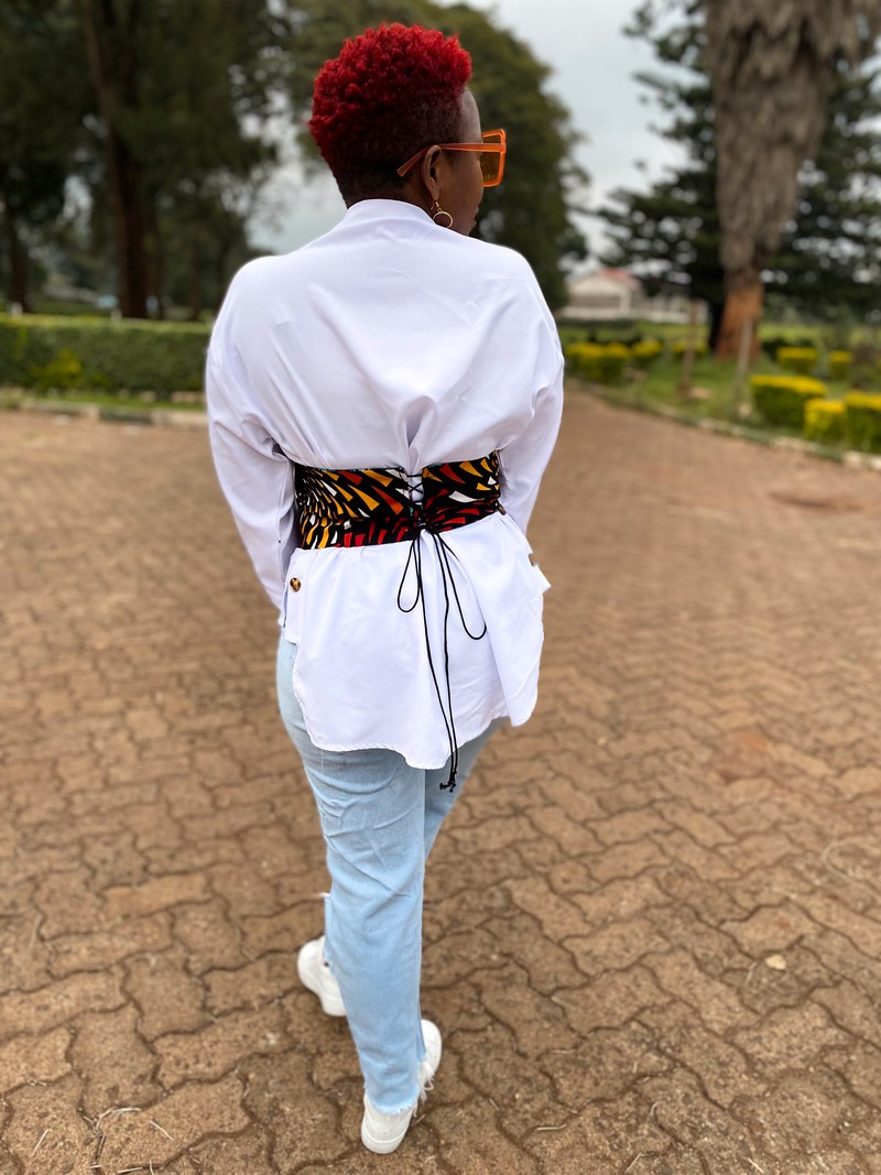 Elevate your outfit from basic to stylish with the Muthaka Ankara Reversible Waist belt. This belt can be worn on either sides and is a perfect match when styled with a pair of jeans and a boyfriend shirt for that stylish look. Occasion: style the belt with a pair of jeans and a boyfriend shirt for a relaxed casual look while going out with friends for brunch or a coffee date. Style it with a little black dress (LBD) for a night out with friends.