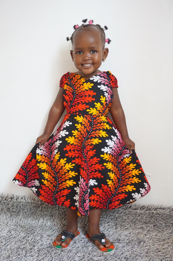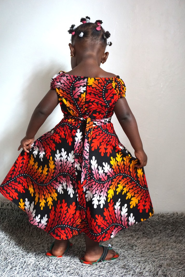 This s a beautiful dress for your princess. It comes with an elastic band at the back for extra comfort for your princess, has two strands for teiying in the back. Let your princess shine with our Nana dress.